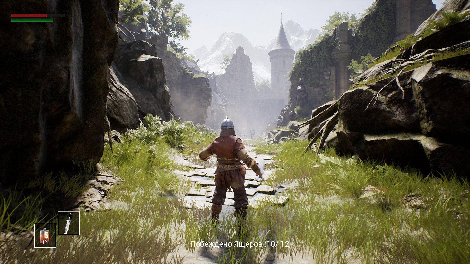 At the moment, there are 4 heroes with different weapons and 3 levels available in the game. In the menu you can choose any hero and any level, all of them are available initially. To complete the level, you just need to defeat all the lizards. Bonfires will help you do this, after resting at which you can save your progress, as well as healing “Baikal water” that will restore vitality if they are running out.