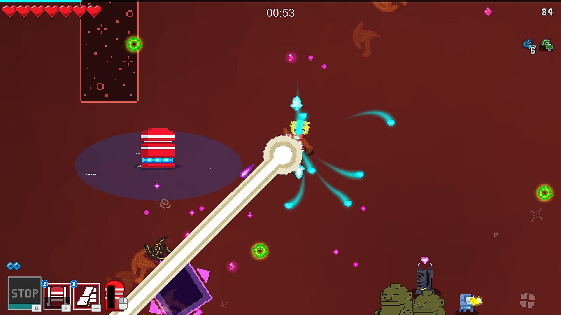 After seeing the Ending of Emica, it will unlock 'Gate crystal' and 'gacha-03' in the shop.  The 'Gate crystal' allows players to block some upgrades from appearing in the stage. It can also manage the 'Endless mode' in the second tab. The gate and crystal will turn purple when 'Endless mode' is on.