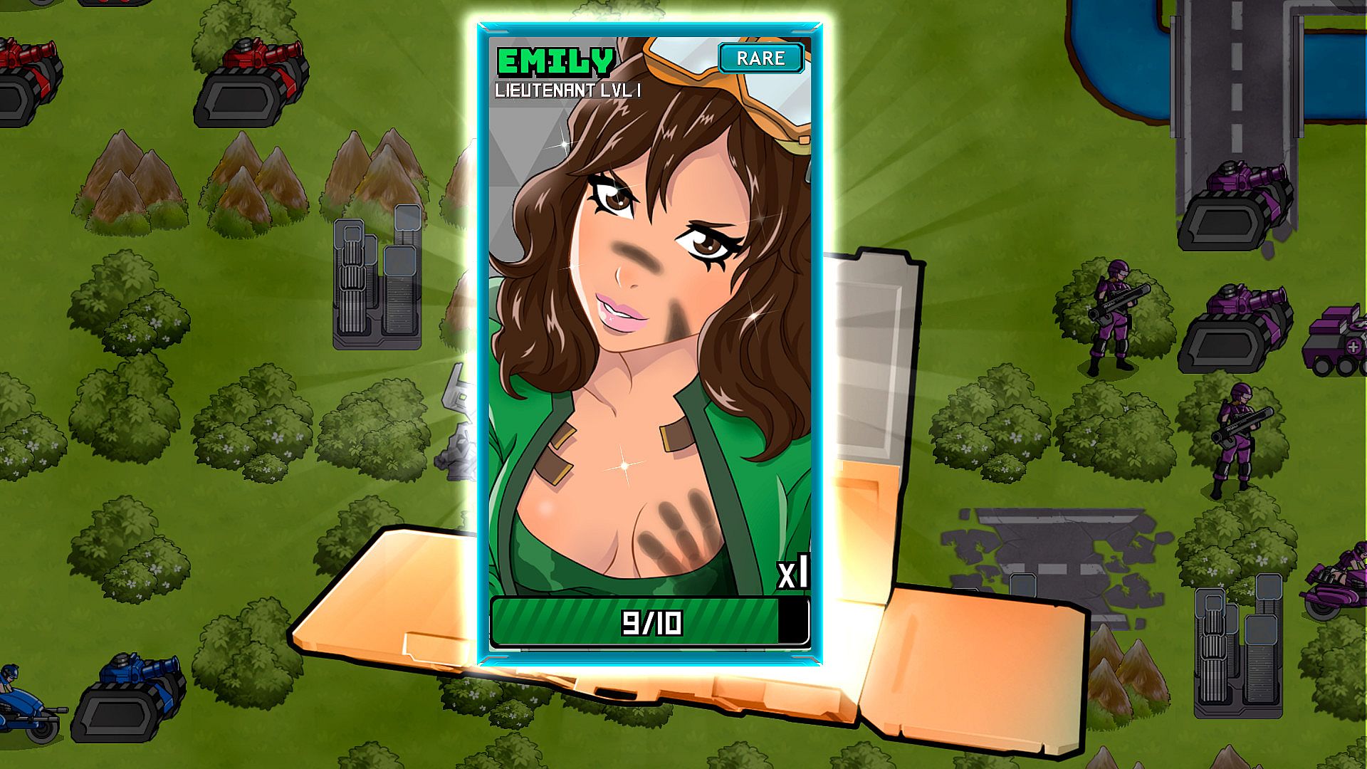 Your army is comprised of the toughest and the most stunning female Captains, Lieutenants, and Sergeants. Ready to fight under your command, their loyalty increases as you win battles. Rank them up to develop their skills, and take them to new heights. Then construct your ultimate battle deck!