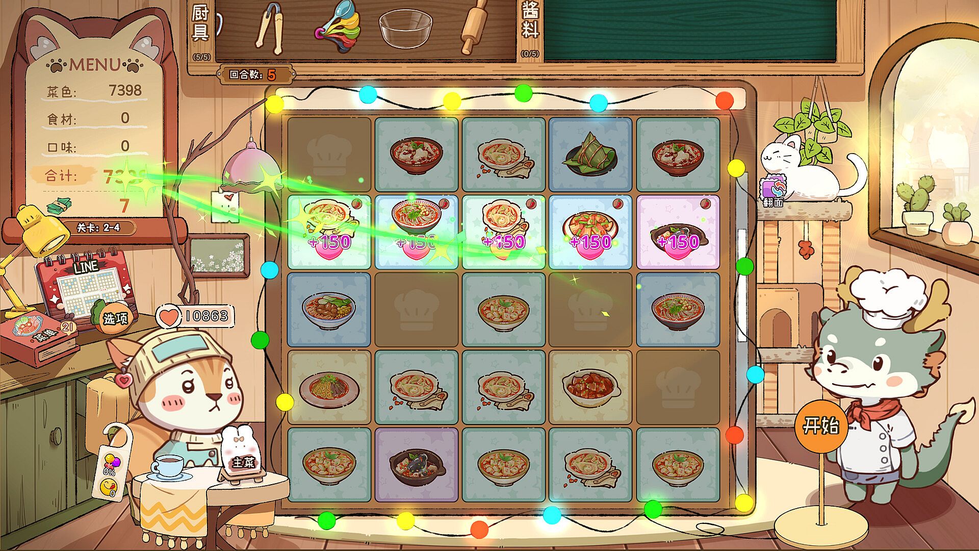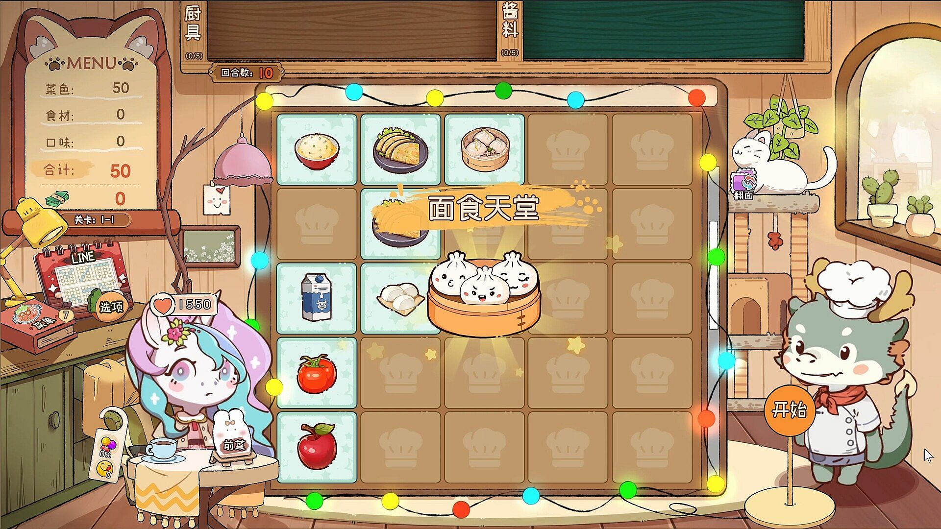 Different kitchen tools enhance card effects, while sauces let you tweak flavors — giving you endless possibilities in your culinary journey.