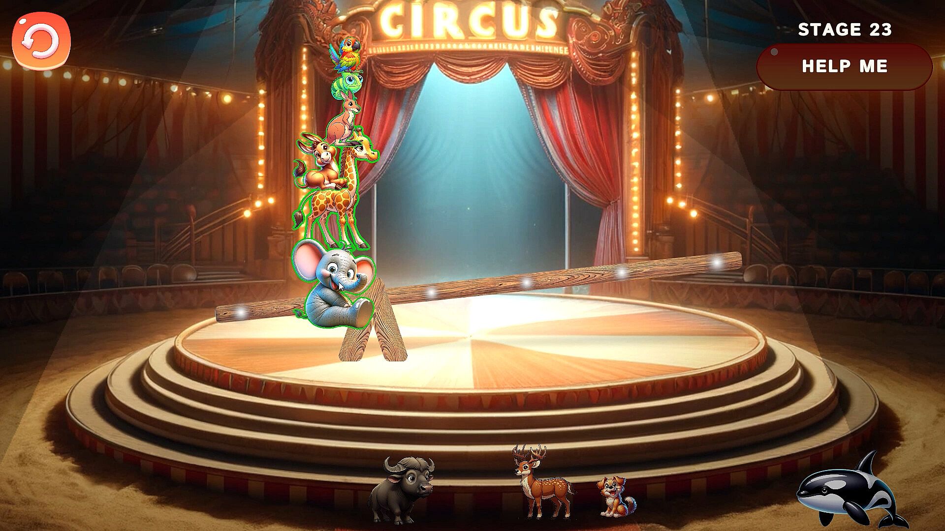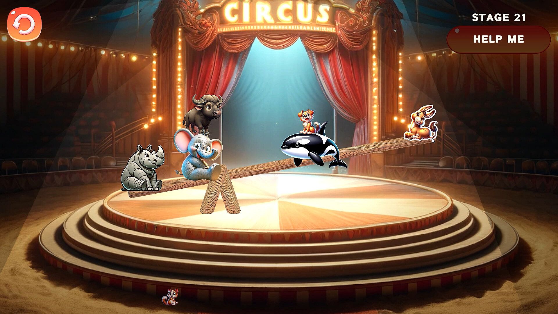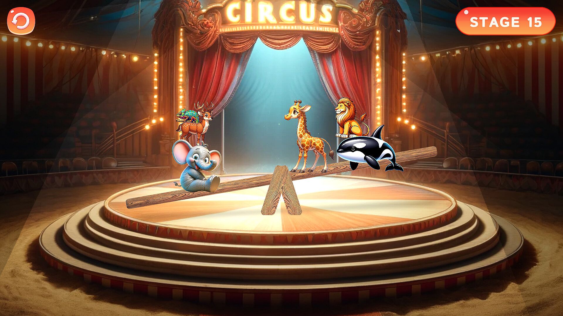 Animal Tilt-a-Show is a relaxing casual logic game where your task is to stack a variety of adorable circus animals on a wobbly seesaw to maintain perfect balance! Test your skill and logical thinking as you carefully place elephants, lions, donkeys, and more, each with their own unique weight and shape. With colorful visuals and progressively tricky levels, Animal Tilt-a-Show is the perfect game for all ages. How many animals can you balance before the show tips over? Step right up and give it a try!