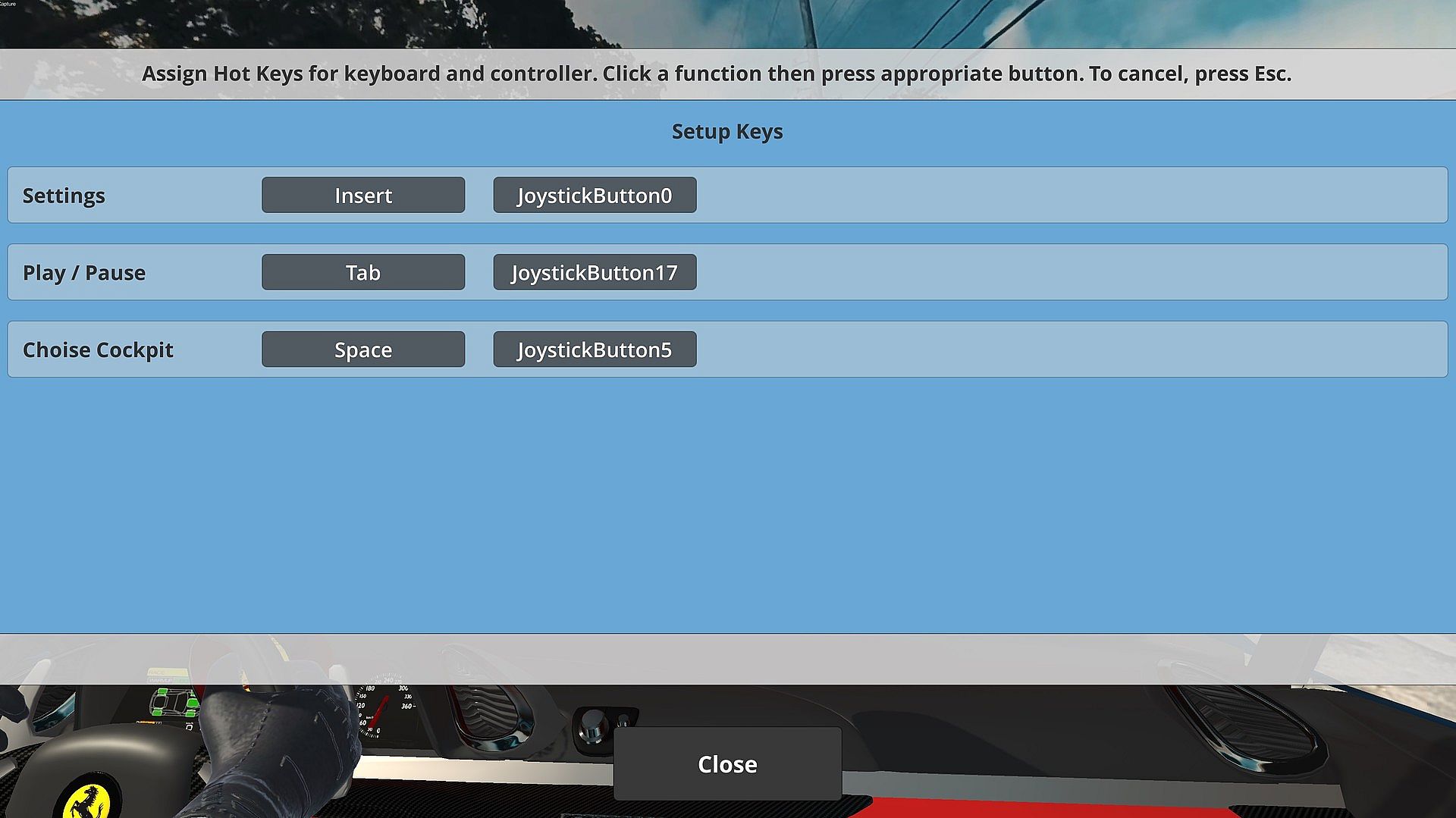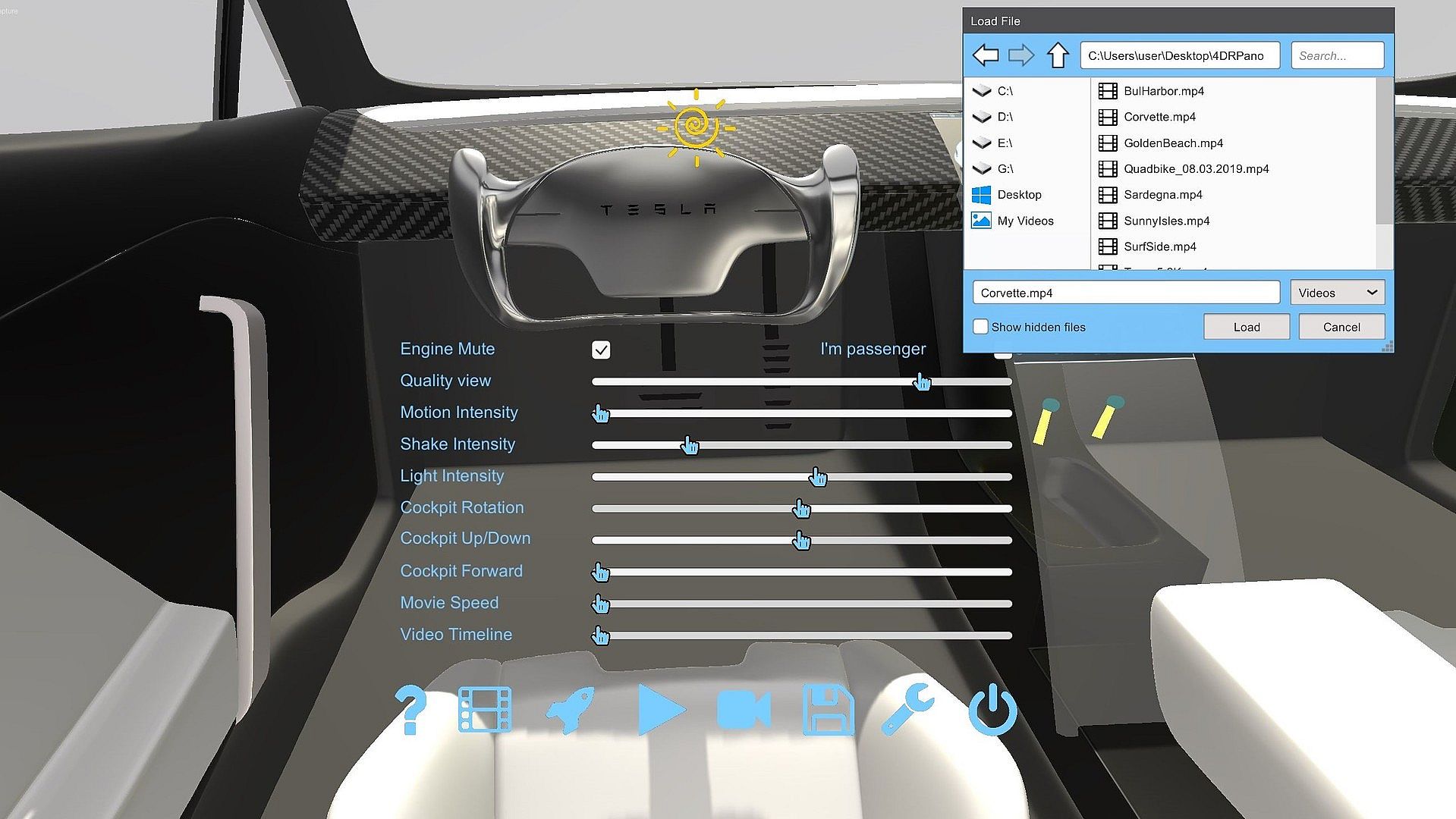 - Choose between 6 Supercar cockpits or 5 Space Bikes, while running the video.