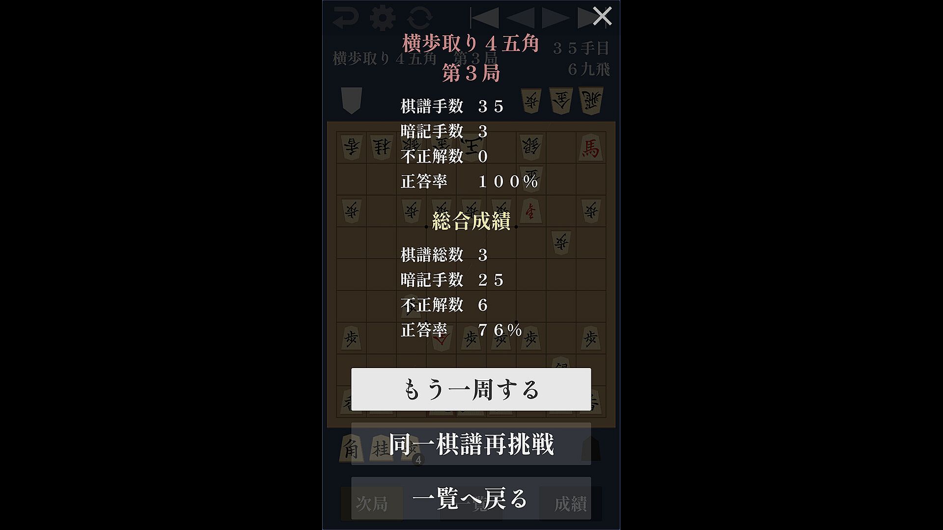 Then just click "Memorization Challenge" button to start memorization training immediately. All you have to do is to recall the moves as they are in the imported game record. If you make a mistake, the move will be returned immediately, and if you don't know the move, you can skip it. If you make the correct move, the game progresses. The final move also comes with an effect! Let's enjoy memorizing the game like a game.