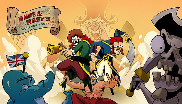 Anne and Mary’s Hunt for Booty tis a side-scrollin' adventure chock full of addictive gameplay rooted in the timelessness of ol' brawlers. Slash yer way through fancy environments and shoot down waves o' British Naval scallywags with the fierce female pirates, both inspired by historical buccaneers!