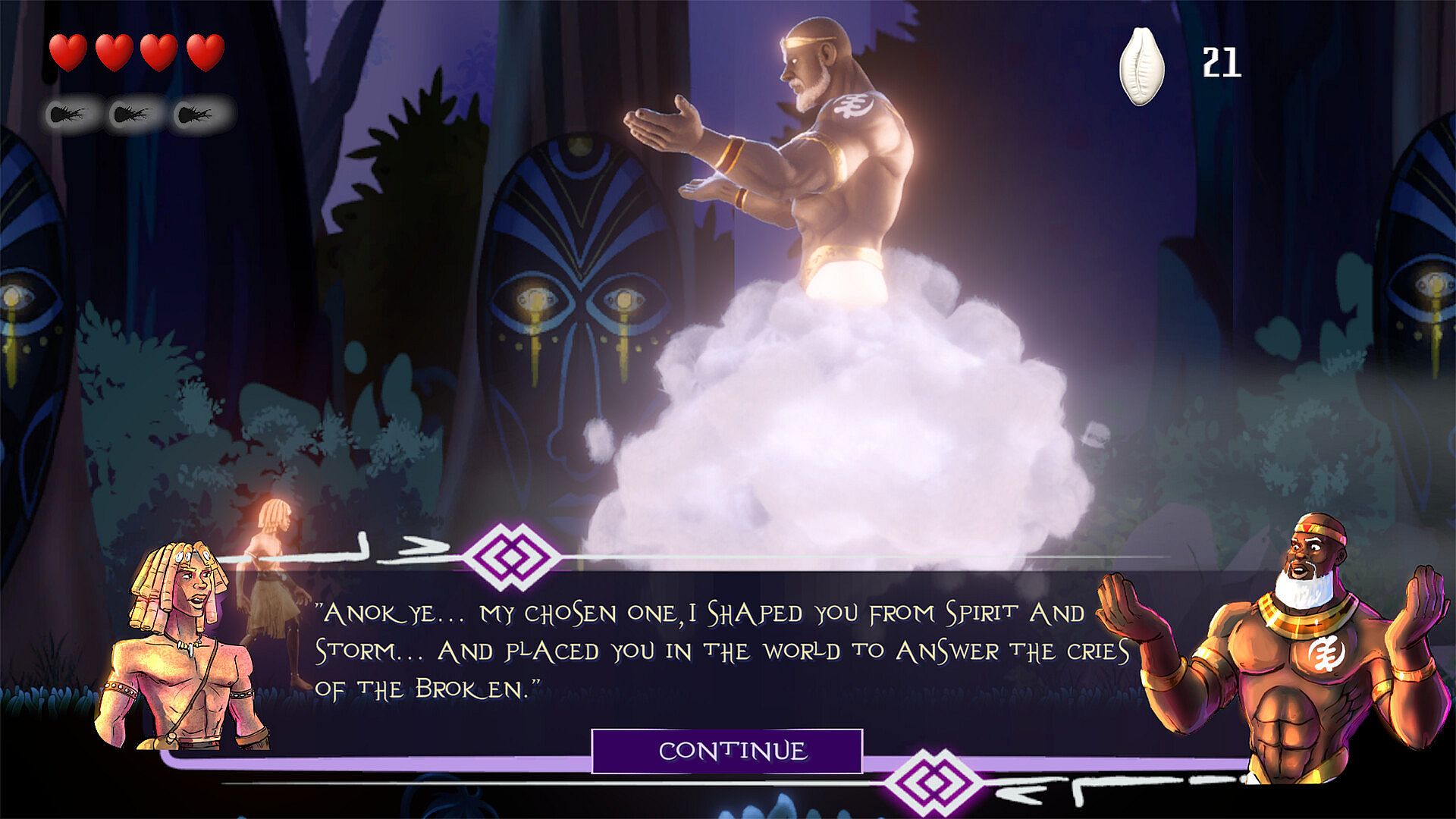 Anokye is a 2D action–adventure platformer that reimagines the birth of a legend. Step into the role of Anokye, chosen by destiny to unite the Ashanti people and bring light to a land shrouded in tyranny. When darkness falls on the Kingdom, one hero rises. Armed with a sword, staff, and sacred whisk broom, Anokye must battle through several stunning levels, from ancient villages and dense forests to high mountain peaks and mystical waterfalls.