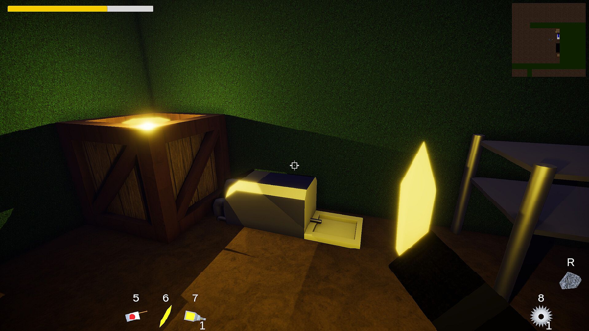 A giant hedge maze with interactables scattered around, the layout of the maze is unchanging but items and puzzles are slightly randomized. Every piece has its puzzle, every item you find is useful. There is a threat, the forest goes silent when a predator is around. Don't let it hear or see you, it is unlikely you will escape. Use noise and sound to your advantage, you'll hear it before it can hear you.