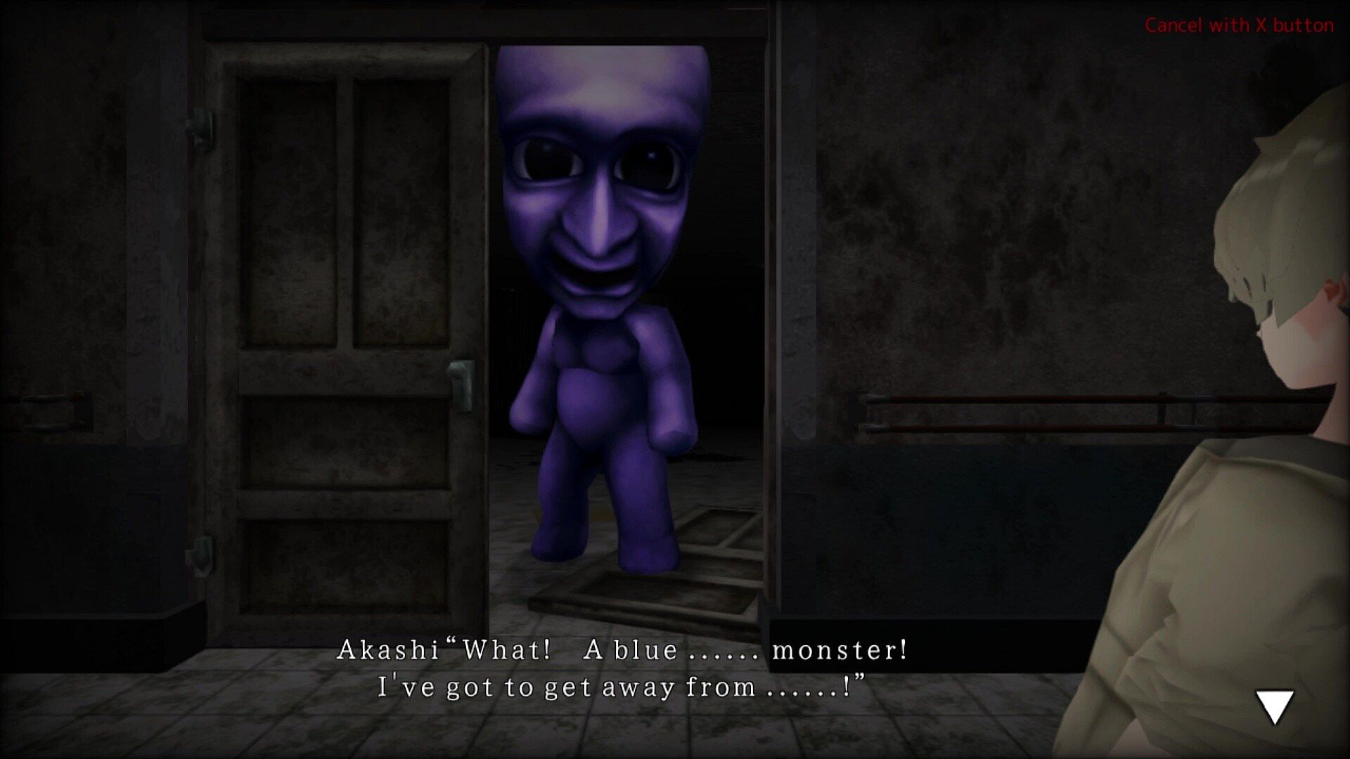 While exploring the hospital, he encounters a blue monster called “Aooni”, and when he touches the mask that Aooni dropped, the hospital transforms into an alley, where he encounters a mysterious woman wielding a kitchen knife called “Slit Mouth Woman”.
