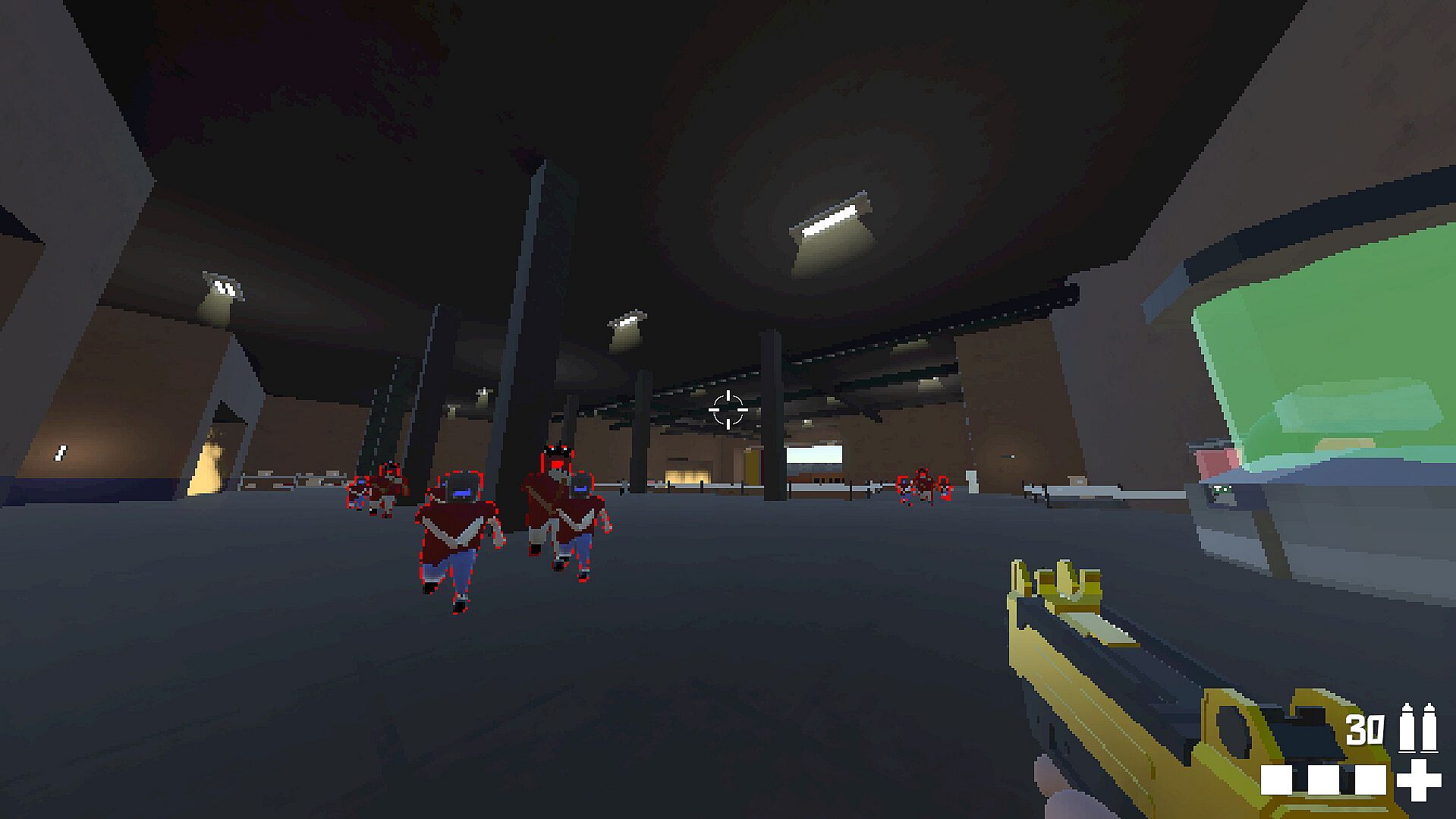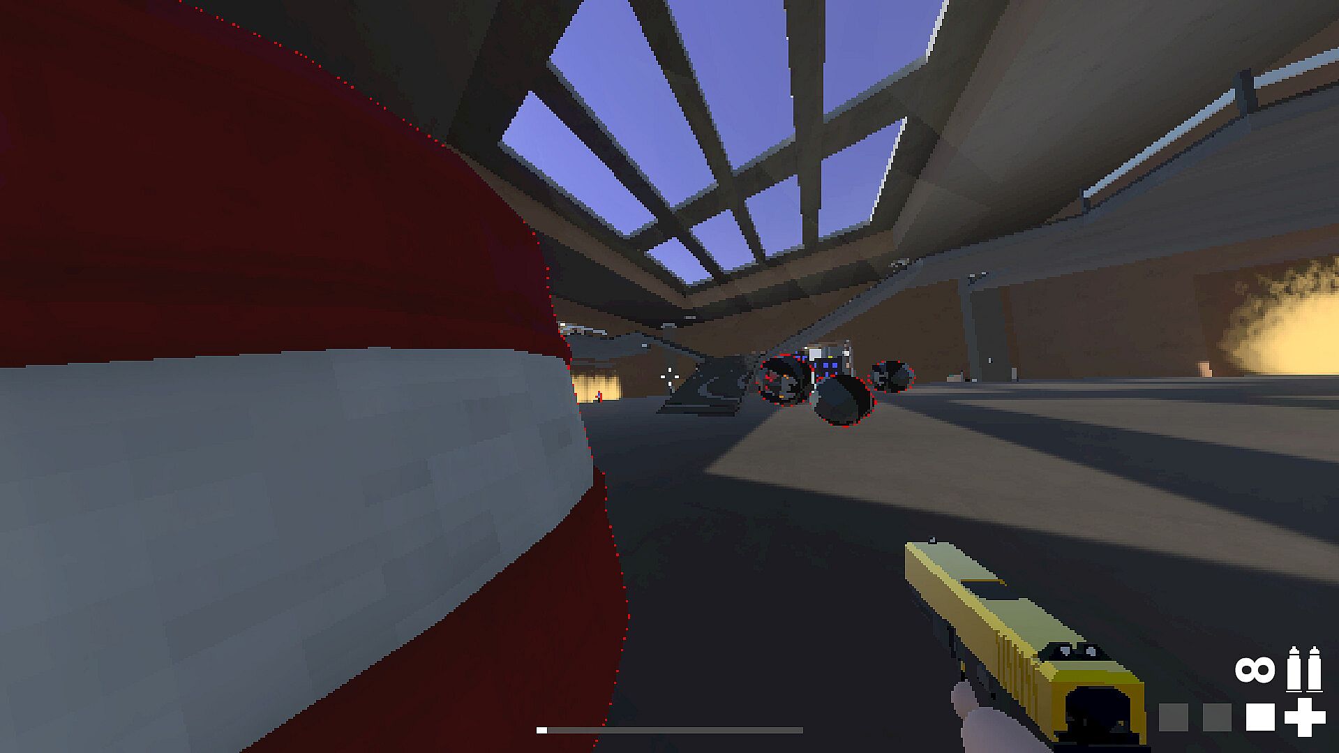Fluid movement allows for rocket-jumps, sliding, dashing.