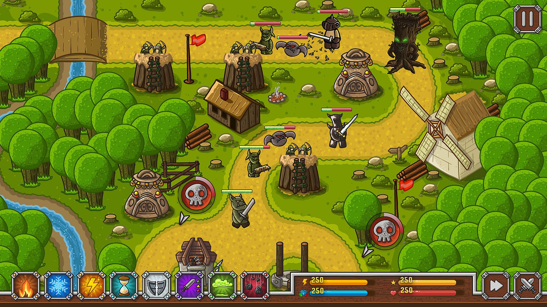 Spend resources to build towers and buy upgrades that fit your play style perfectly, with view of of enemies in the level.Tower Combinations