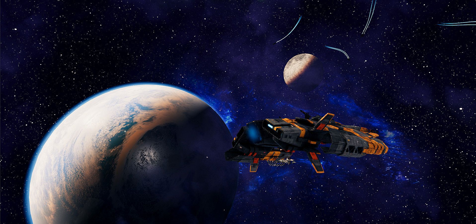 Aphelion: Frontier Chronicles is a combat space simulator, where you join the Federation forces in a conquest for control over the frontier. Play through the campaign storyline or jump into action in a free roam gameplay mode.Master the Federation fleet fighters, corvettes, and capital class ships. Research new technologies to aid you in your conquest. Fight your enemies and make new friends. The universe is yours.