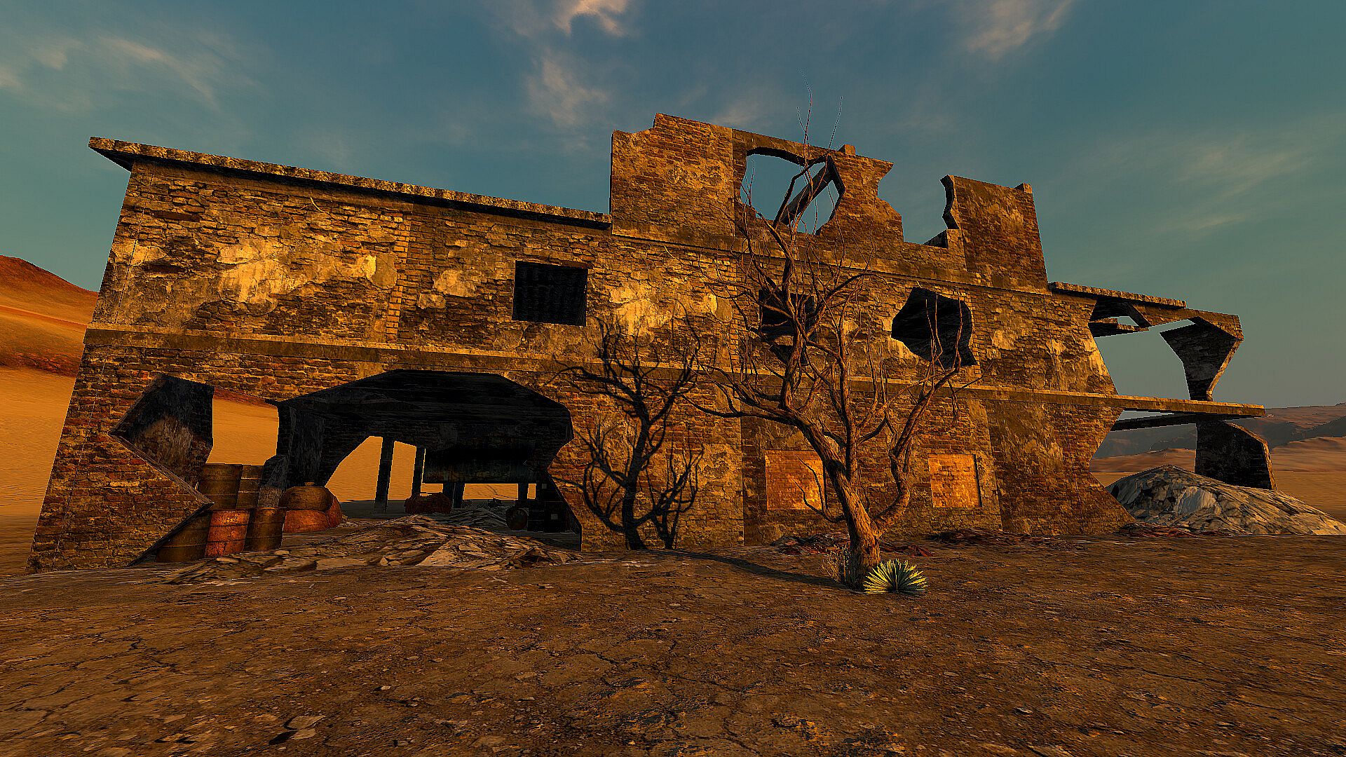Explore the infinite, procedurally generated world. Use your compass and landmarks to navigate. Follow roads for easier navigation, but don't get attached to them, sometimes they lead to nowhere. Find abandoned buildings, wrecks, caves, faction camps and bases. Trade or fight with different factions.