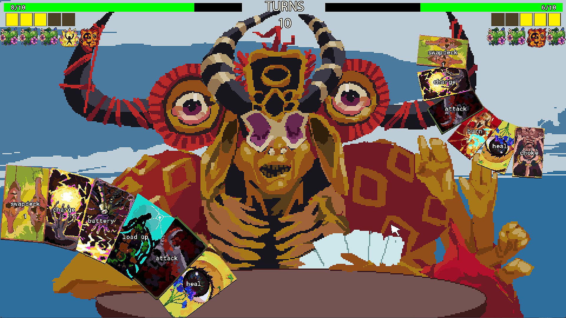 Use Synergizers, Cards and Afflictions to defeat manifestations of grief and trauma.
