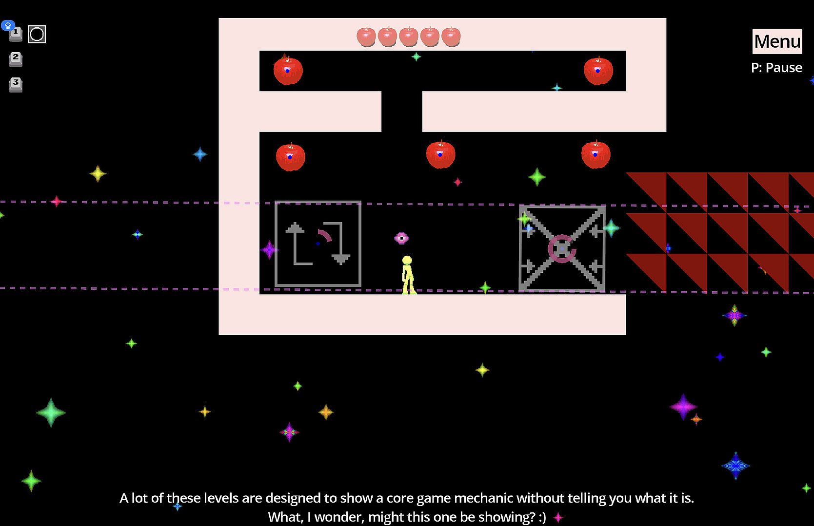 A puzzle platformer passion project where you manipulate the fabric of space to collect some apples. Tear holes, rotate chunks, and mirror entire columns of space across each other. Collect all the apples with a given set of abilities in each stage.