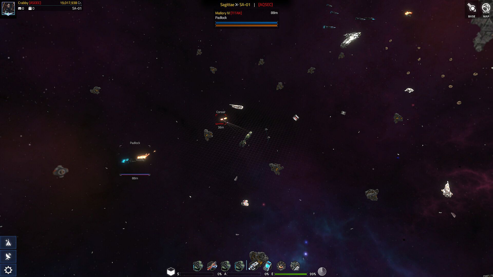 A huge universe with hundreds of sectors, Asteroid belts, Nebula, Gas clouds, Ice Fields and more to explore.
