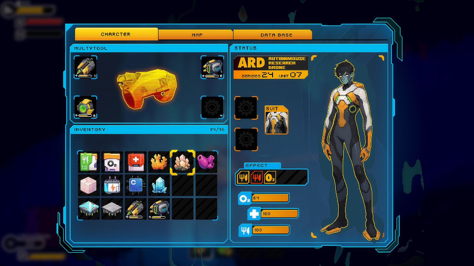 Survive in a harsh underwater alien world filled with mysterious and aggressive fauna! Gather resources, build bases, and craft equipment to explore interconnected biomes in true metroidvania style.
