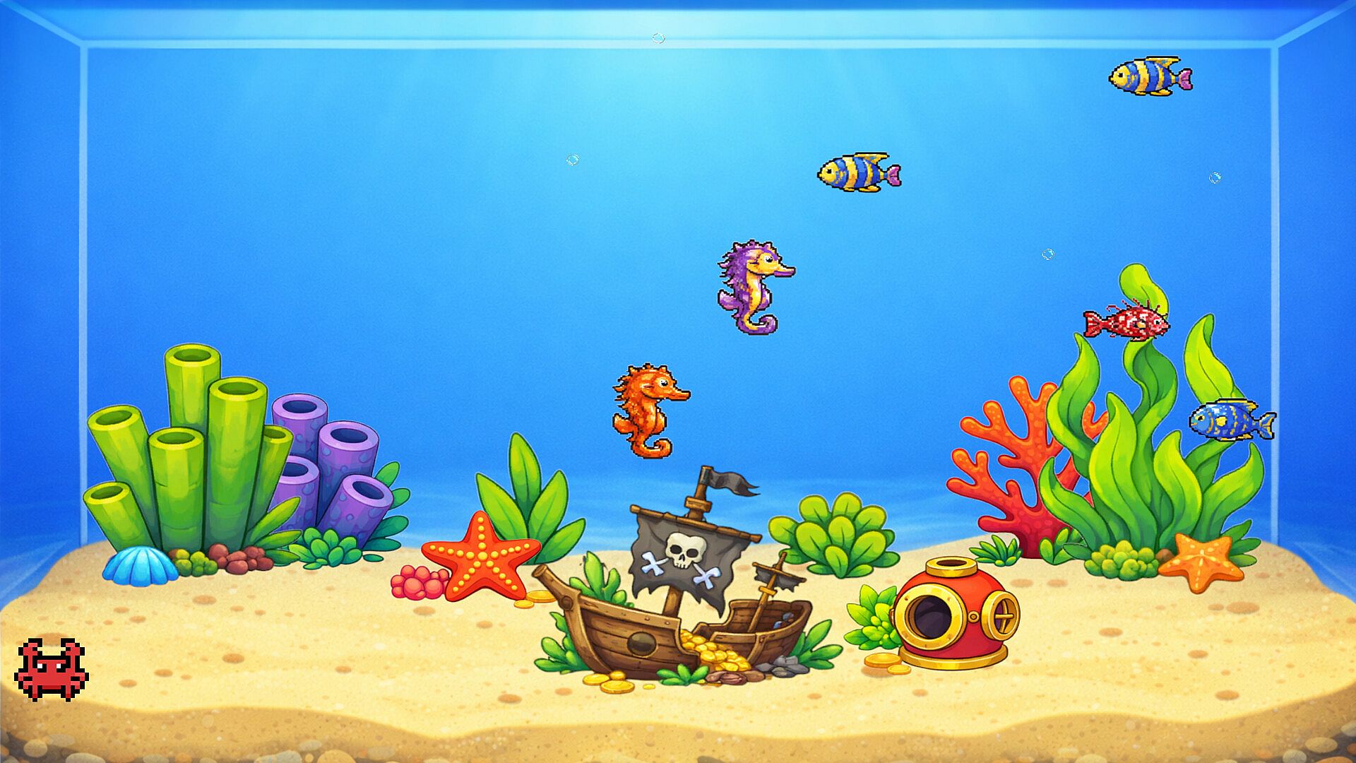 Create, customize, and manage your own aquarium in a relaxing 2D idle simulation.