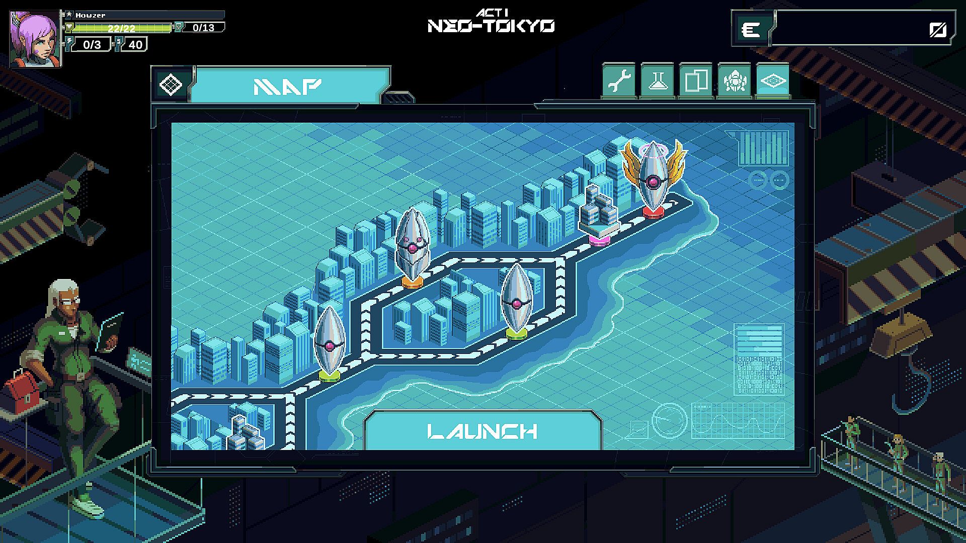 Choose your Pilot and Mech! Prepare to build your city defenses and manage your equipment.