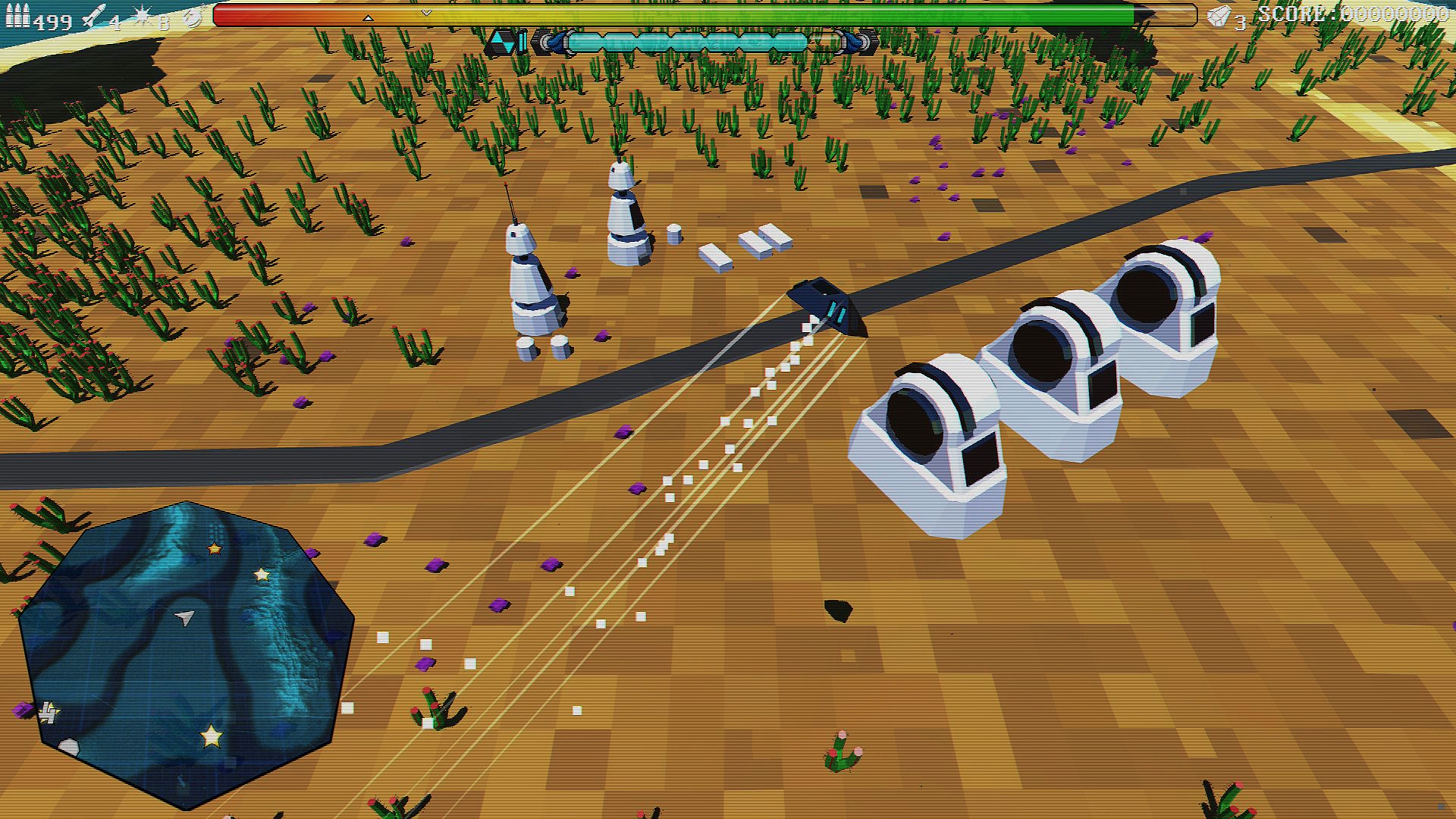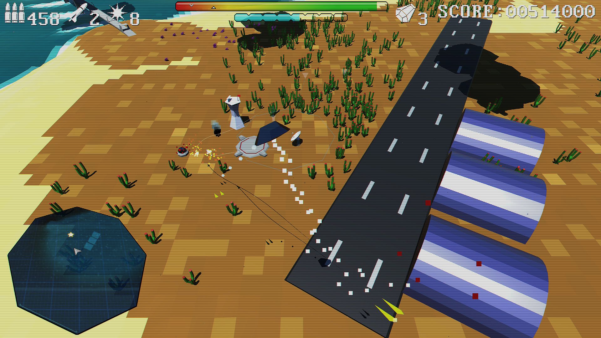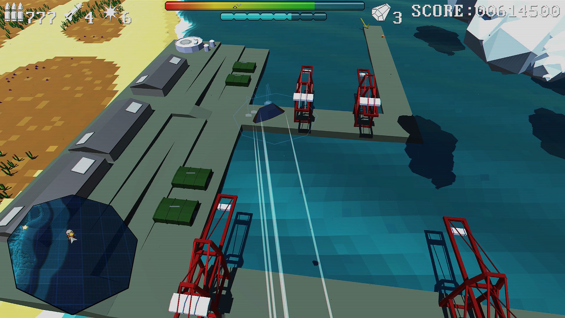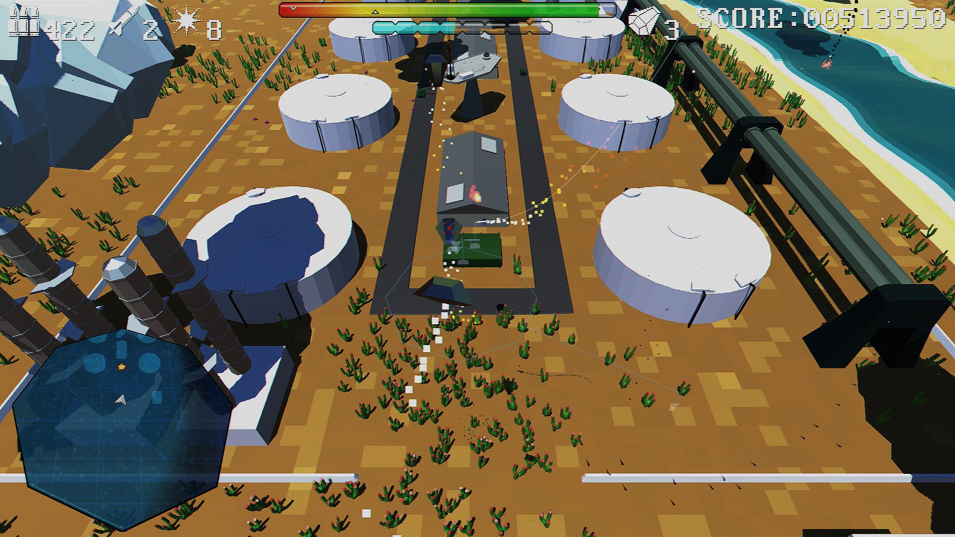 • Pure arcade combat across 3 distinct campaign areas, the Lush Tropics, Scorched Deserts and Volcanic Rim of Melos