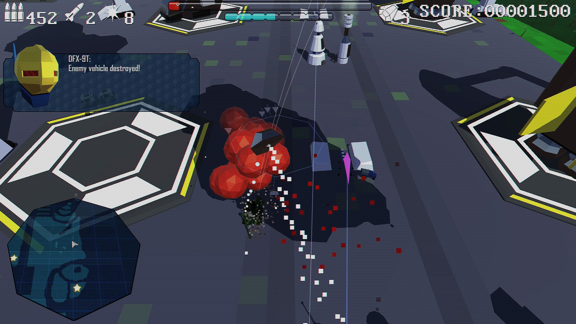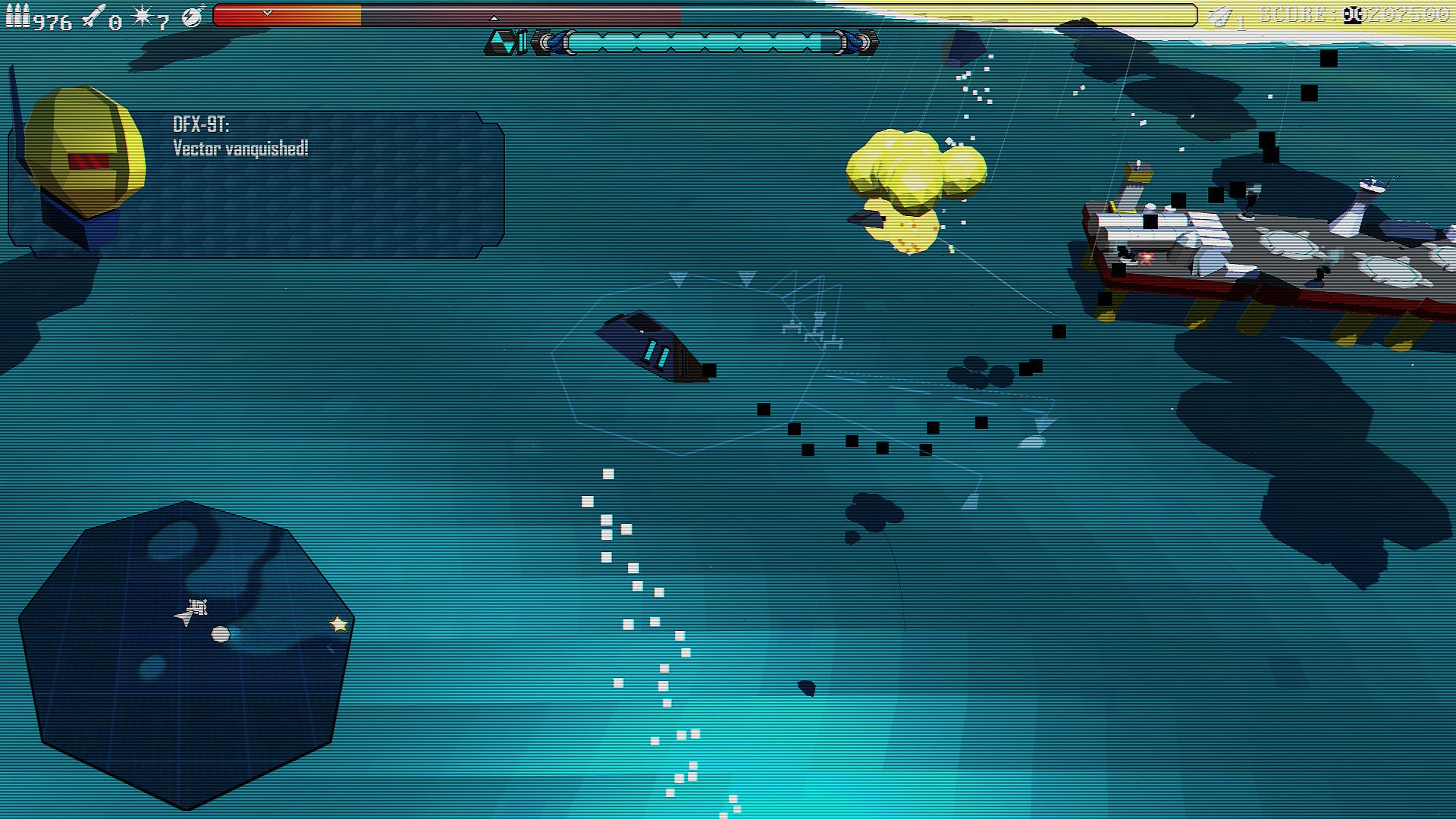 Pilot a stolen alien ship in a rebellion against the Archronite invasion. Fly across the archipelagos of your home world and capture enemy bases with the help of your navigation droid co-pilot, DFX-9T. Battle against enemy Arc Vectors, Fighters, Drones and Laser Tanks, liberate your planet, Melos.