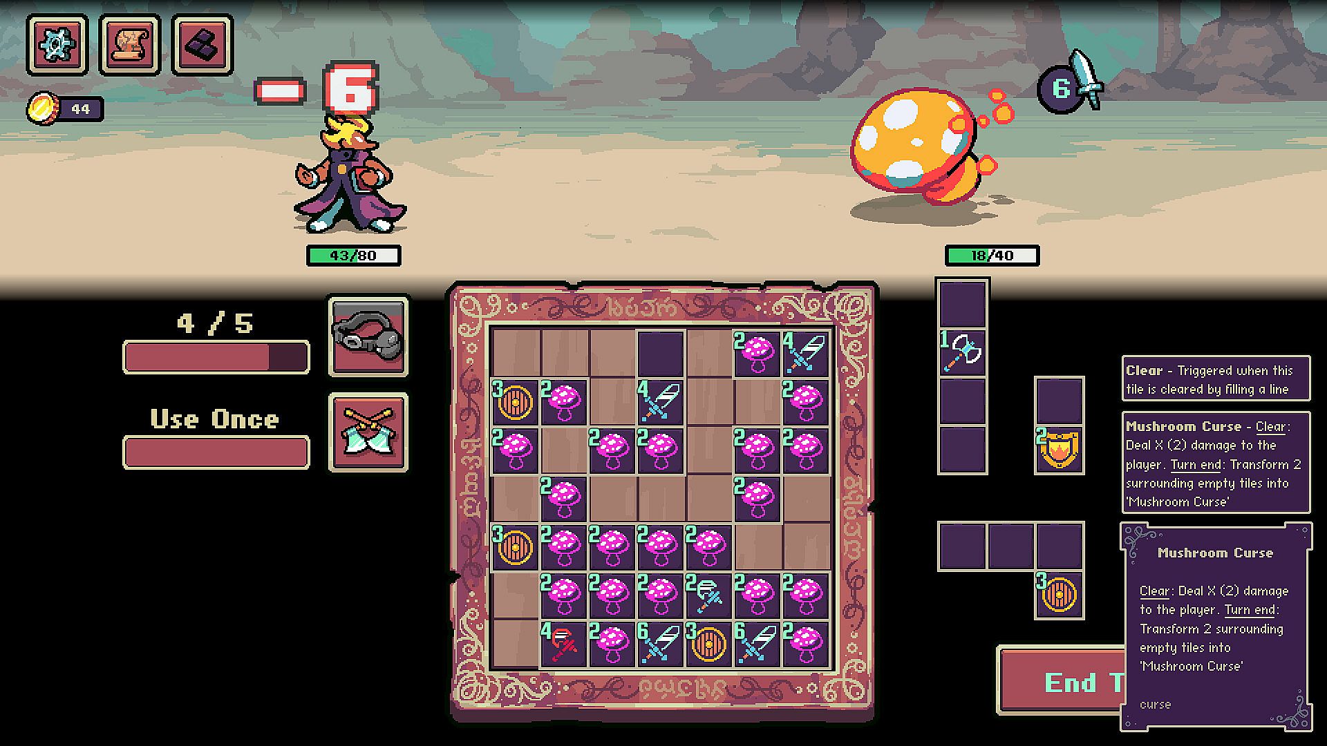 Build your collection of magical tiles in this take on the Roguelike Deckbuilder. Strategically place tiles on your Arcane Board to create powerful combos. Unleash them by filling lines at the right moment to deal massive damage, survive enemy attacks, or build up your power. Outwit unique enemies that deploy their own trap or curse tiles. If you fail, try a different strategy while traversing a procedurally generated map. Learn new skills and acquire artefacts that bolster your strategy.