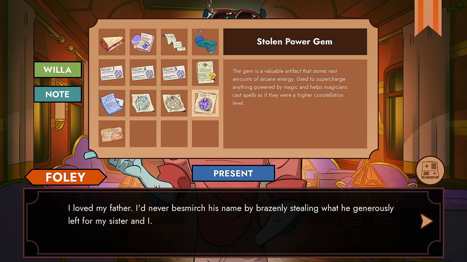 Use collected evidence to solve "Phoenix Wright" inspired cross-examination puzzles at trial.