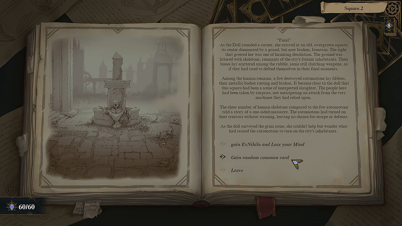 Before each run in Arcane Path, you’ll choose one of the 12 artifacts that shape your gameplay. Each artifact grants unique status effects, enhances starting cards with powerful bonuses, and adds thematic cards to your deck. Artifacts also influence battle rewards, ensuring key victories provide cards aligned with the artifact’s theme, which in turn offer new strategies and playstyles.