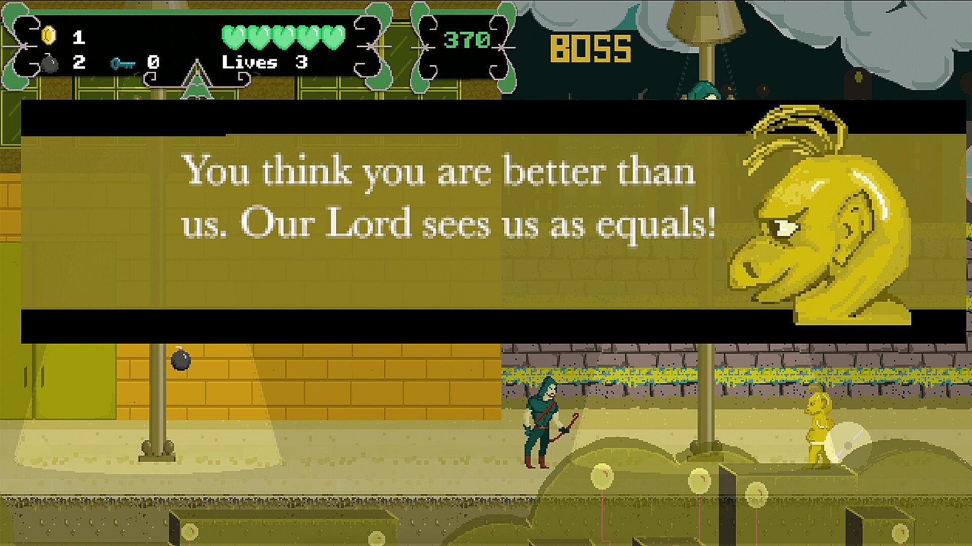 It is the time of the great convergence. The dark forces of the world are becoming more powerful as each day passes. Soon there will be nobody left to stop the evil from spreading throughout the lands. It's time to relive the 16-bit glory days of yesteryear with the retro inspired adventure Archer of Den. Join the Archer on this action packed romp with over 20 levels of side scrolling shooting. On your adventure you will run, jump, slide, fly, and shoot your way through the world of Azure. During your journey you will meet a unique set of friends and foes; where you will discover their weaknesses and learn patterns to succeed. As you travel the strange and unique lands of the world you will need to be cautious of traps, pits, and enemies at every turn. To get you moving there is over 13 original heart pumping tracks developed just for this quest. Original 16-bit retro inspired graphics, hours of replay value, and achievements to be earned. So keep your aim steady and you arrow true and put and end to the evil plaguing this world.