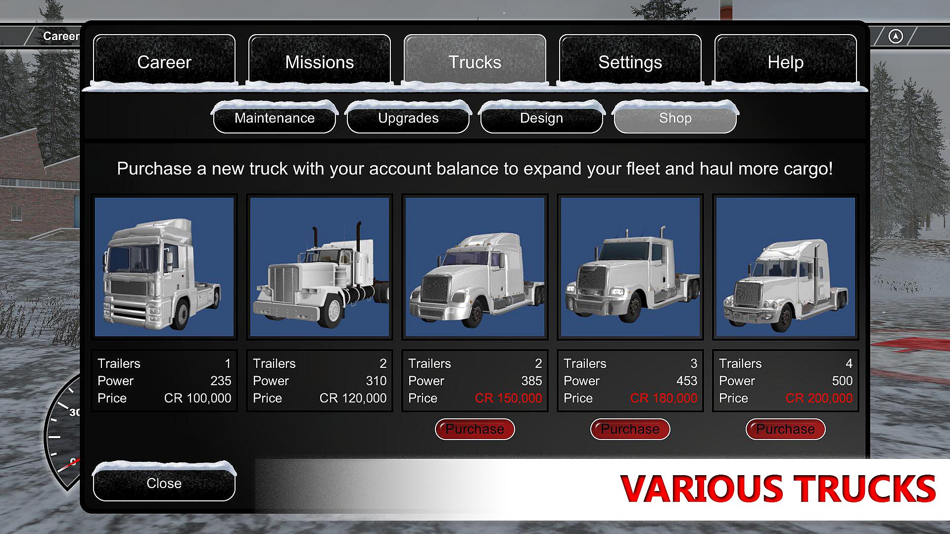 Machines, wood and bulk solids – you'll get them to their destination with a good truck, excellent driving skills and a working heater. More profitable contracts beckon, allowing you to improve your cash balance, buy new tractors and take on bigger consignments. Take care, though – accidents and involuntary pit stops cause more damage than simply making the customer unhappy!