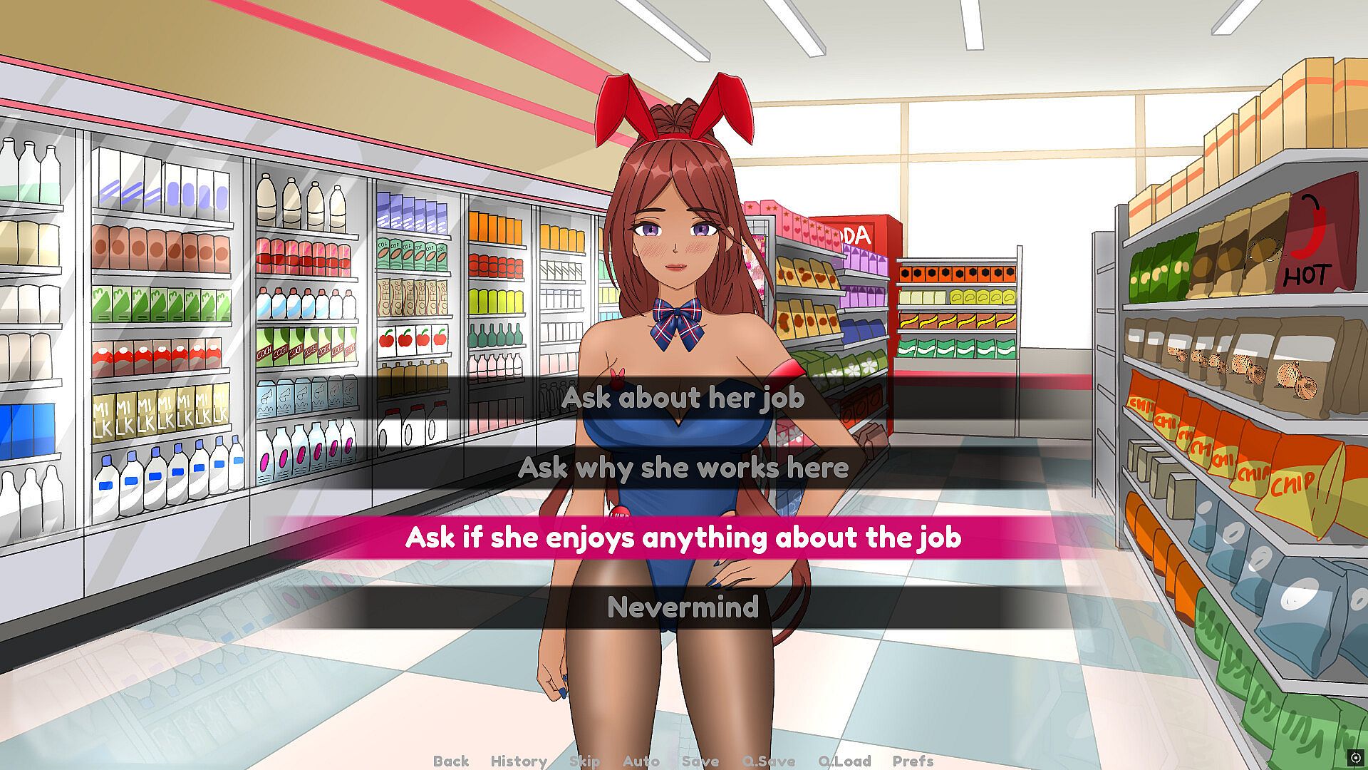 The grand opening of "Bunny Mart" has turned your quiet town upside down. The snacks are cheap, the drinks are cold, but let's be honest everyone is here for the clerks.