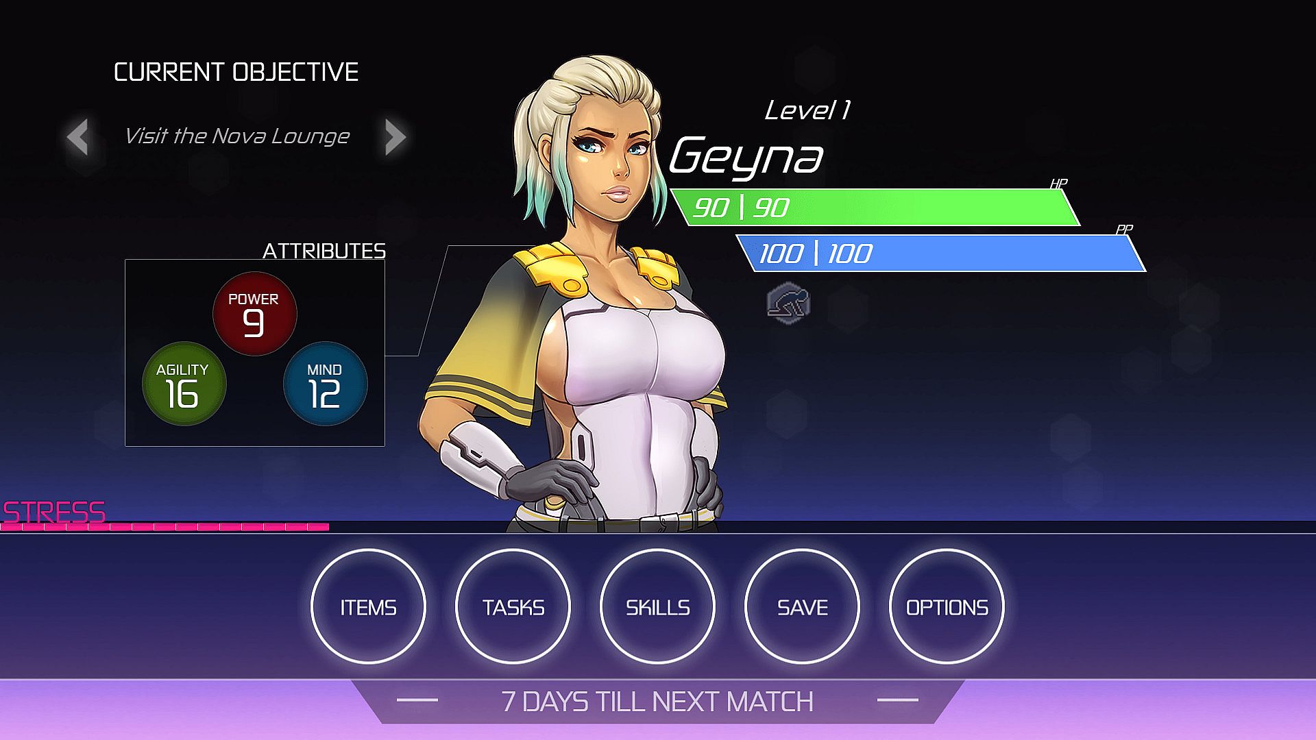 Choose your gender and select one of three appearances per gender. As an RPG Management game, you'll be forced to make heavy hitting decisions as you form your personality and management style. Many of these choices may change the relationship you have with your Gladiator and other characters of the game. The right choices may even lead to a deeper connection between you and your Gladiator.Geyna, the lost warrior, Elona the adventurous doctor, or Armida the fighter who never gives up. Each Gladiator with a completely unique look and personality.Each gladiator also comes into battle with a unique fighting style, including distinctive combat animations.Your choices define how your Gladiator improves in Arenus. Each day you will chose between various options that offer different rewards.Will you have them train for agility? Or have them work at the local bar to earn more credits for new weapons?Balancing such choices with your winnings from fights is crucial to your playthrough. But credits aren’t everything. Stress is a daily part of any Gladiator’s life.It’s important to learn when to press your fighter, and when to use a lighter touch.