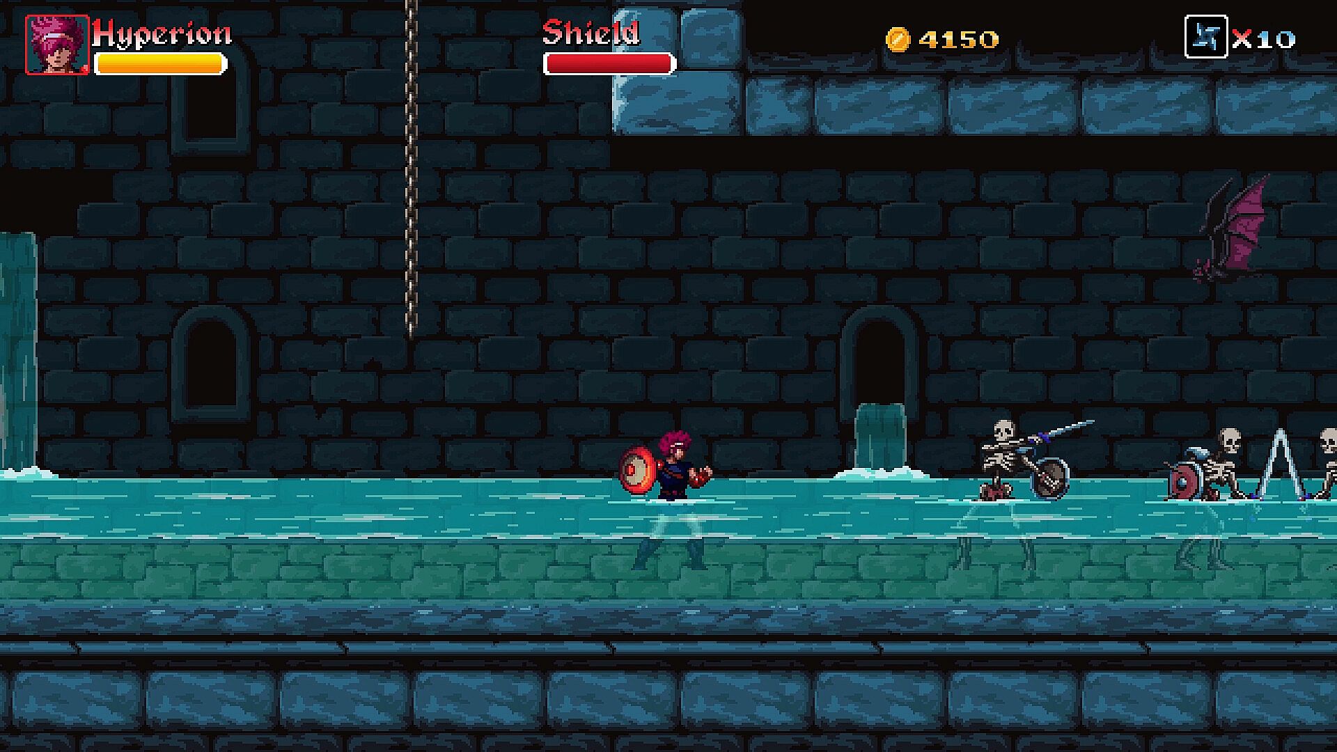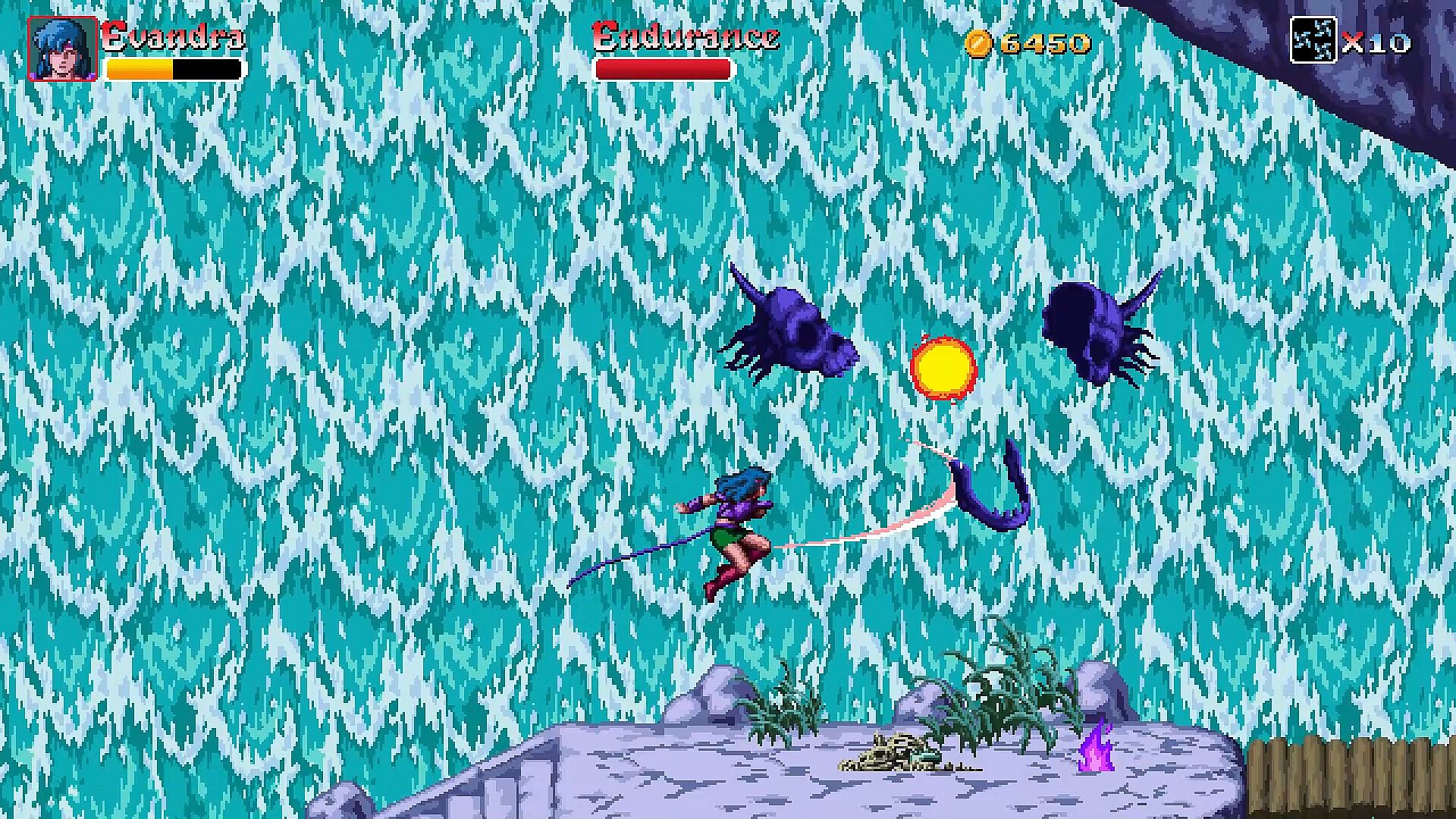 In this episode, Argol will not be alone, Evandra the Amazon and Hyperion the demigod will be at his side. Three playable and interchangeable characters at any time. In addition to their common skills (jump, attack, climb, dash, etc.), each has their own abilities. Argol has powerful attacks (diving kick, energy ball, etc.), Evandra can use her whip as a grappling hook to cross dangerous areas, while Hyperion can activate an energy shield that makes him temporarily invincible.