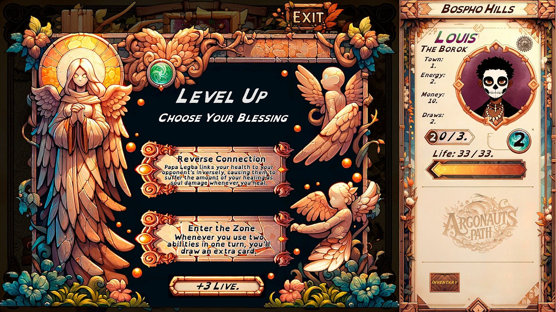 • The Artifact (the first time, it will increase your base health and energy; subsequent times, it will increase your max health in exchange for some health)