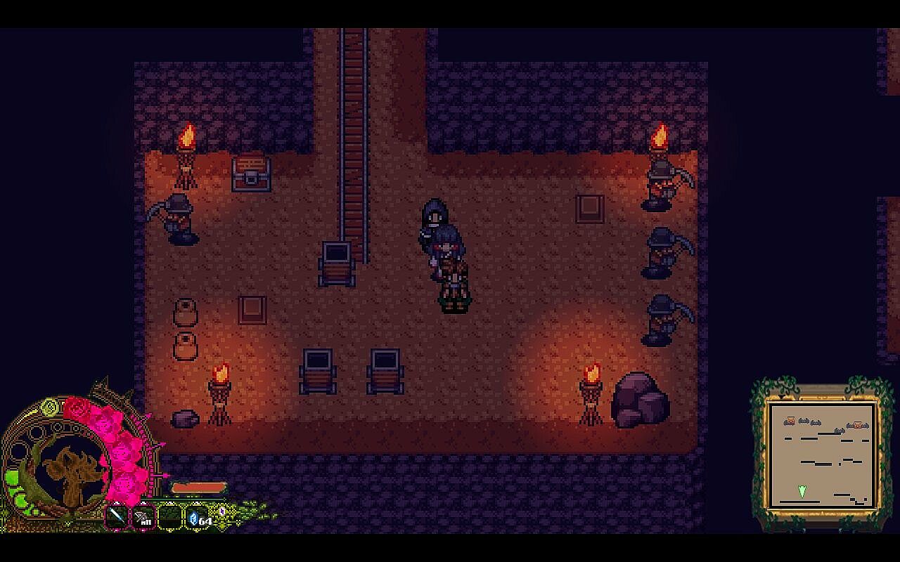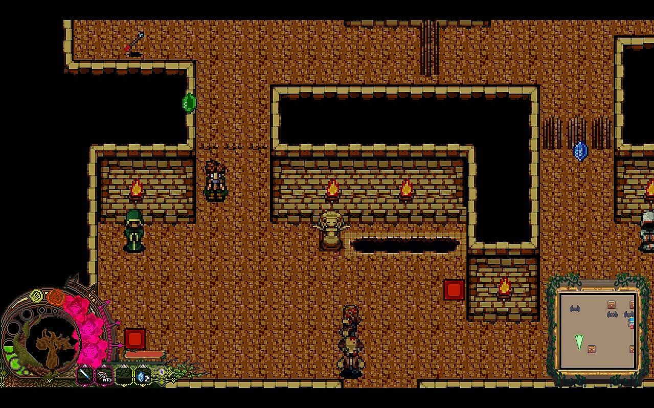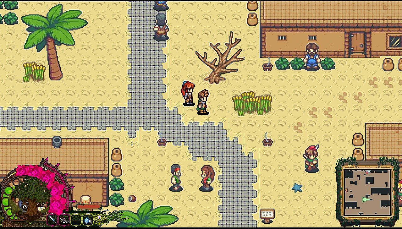Aria's Melody intends to have a large overworld that will consist of several interconnected maps. Each region of the game will have varied biomes and unique elements to differentiate them. Planned regions include: Forest, Desert, Ice/Water, Mountains, Swamp, and others. There will be unique characters to interact with, quests and mini-dungeons in each region.