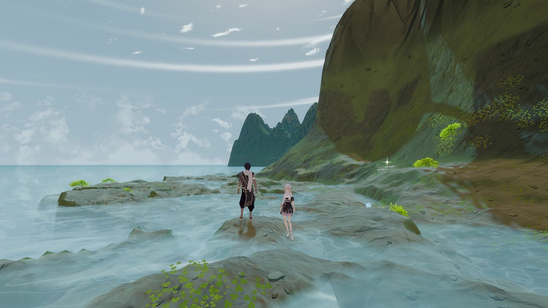 The extreme tides triggered by Moonfall transformed a mountain into an island, creating a vast watery realm. Over time, not only does the weather vary, with high and low tides occurring at sunrise and sunset respectively, affecting exploration range, but the occasional drifting moon dust also causes characters to become fatigued.
