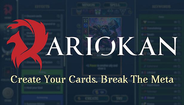 Forget about facing the same decks over and over: in Ariokan, you have the power to create YOUR cards from scratch, give life to your original characters, and break the Meta.
