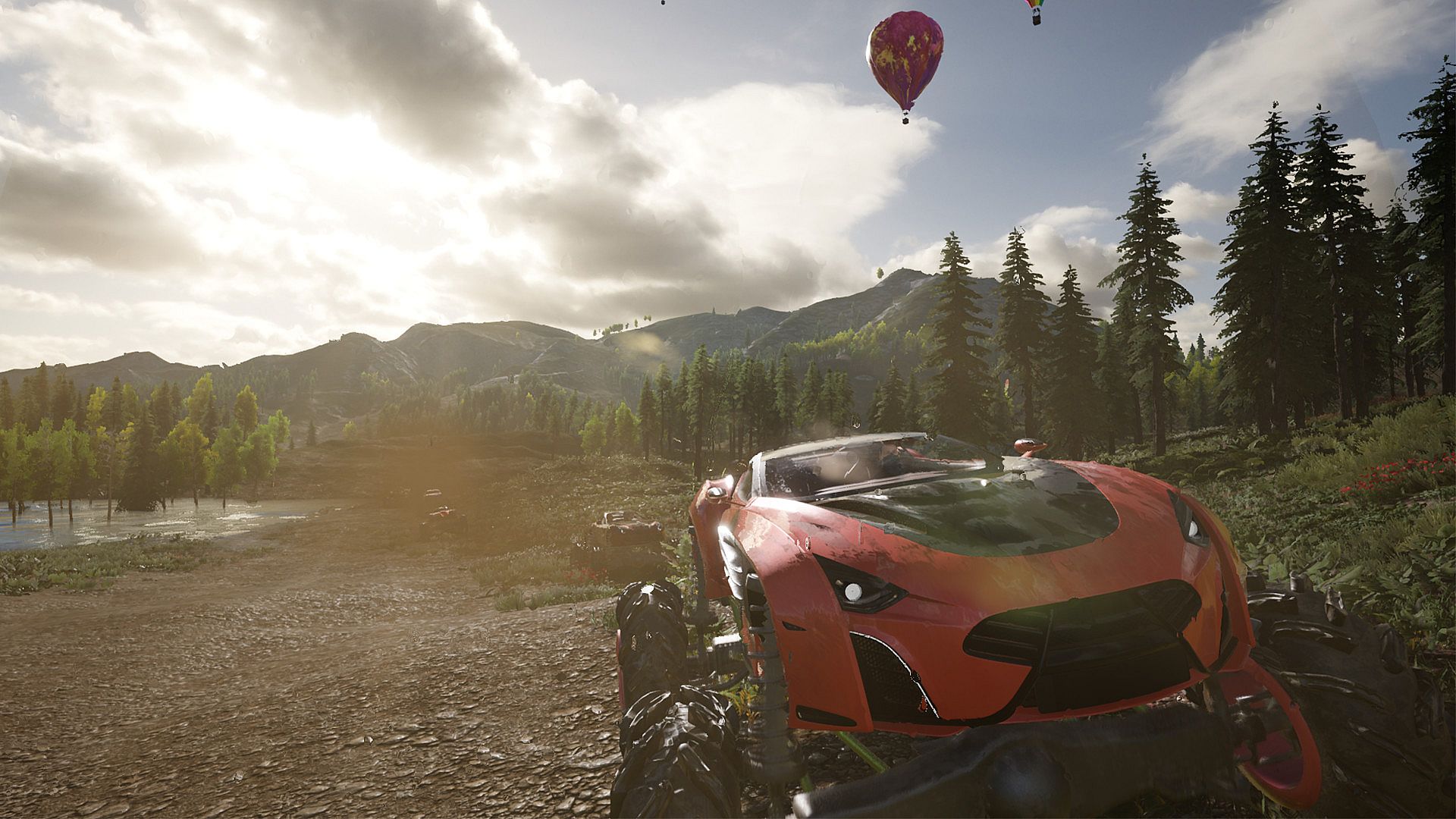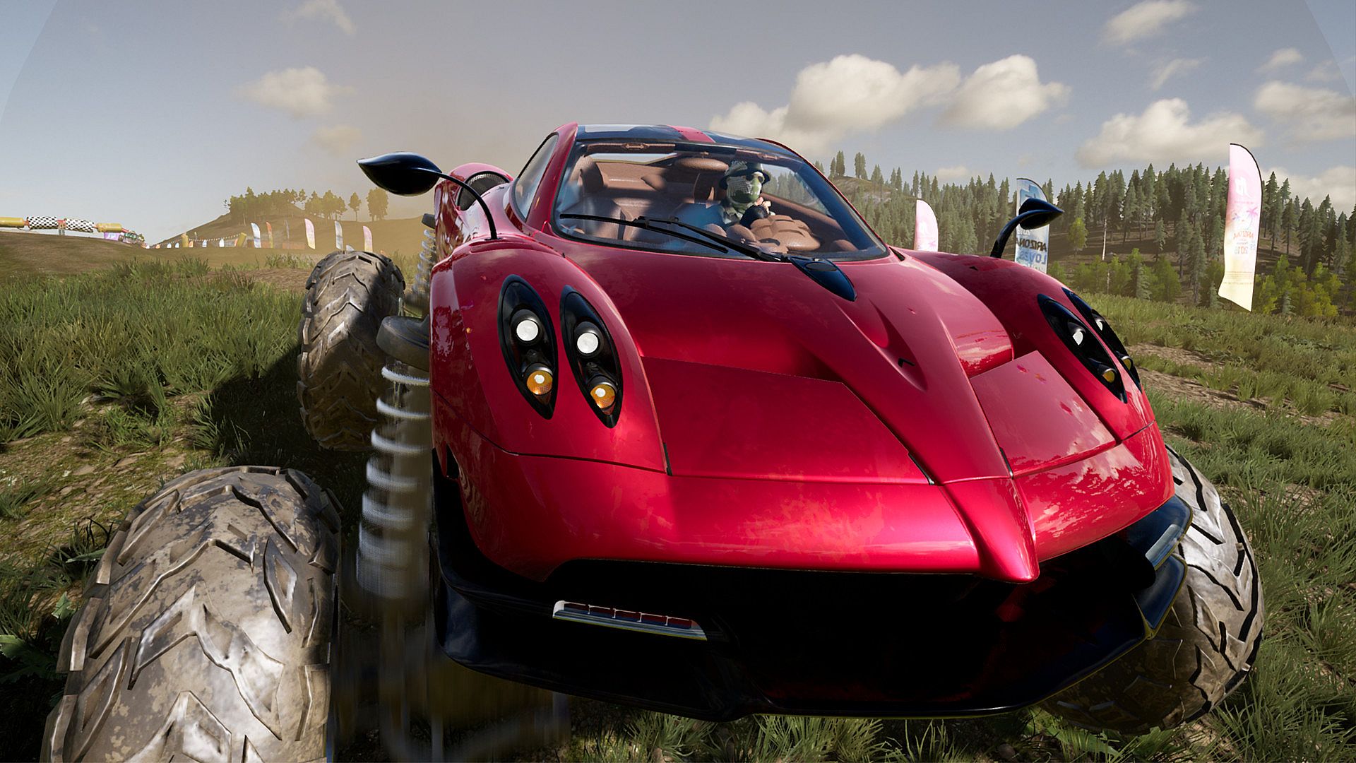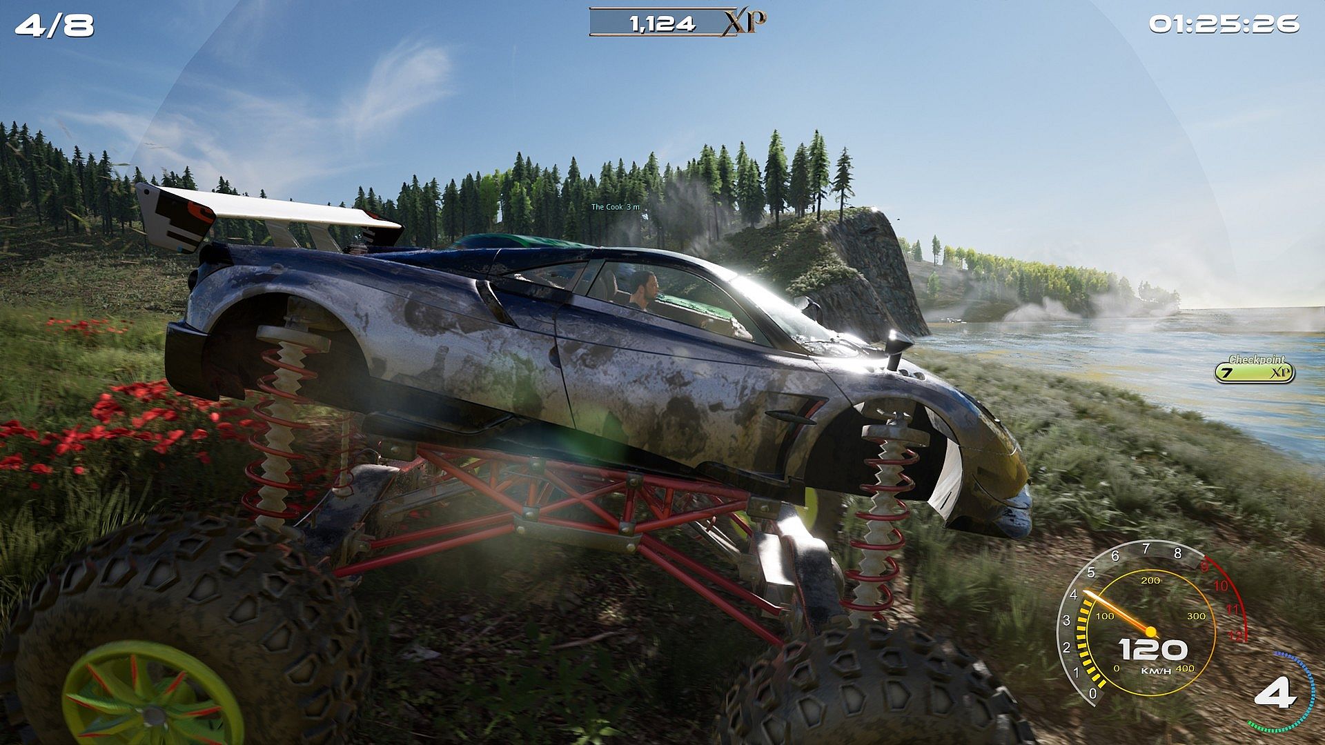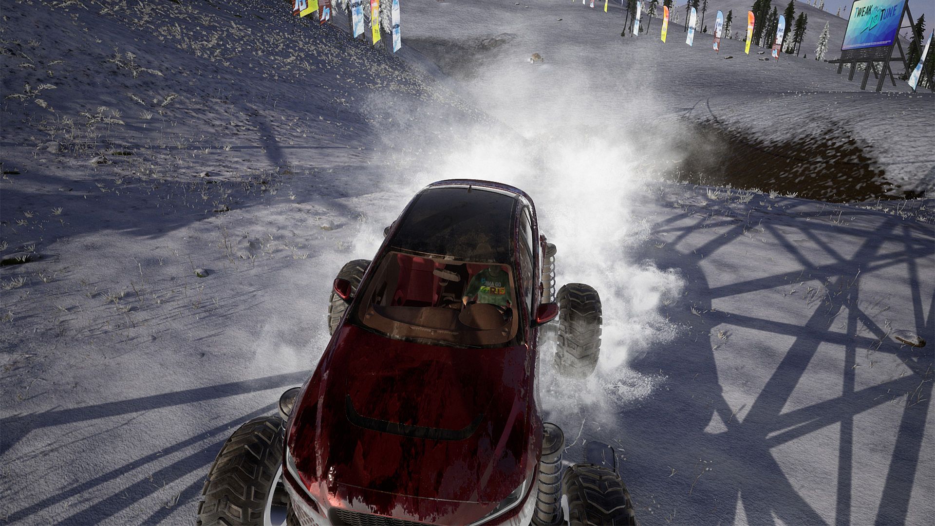 "The graphics and stylized look are actually quite decent. The totally overblown design of the menus? Sure, why not… no issues with that - it's an interesting style choice. 4x4 supercars… great. Cheesy-campish hoists and commentary… yes. This game seems to have sooooo much potential to actually be a cheesy, overblown, stylized, fun racing game… some potential to be an cult classic…."