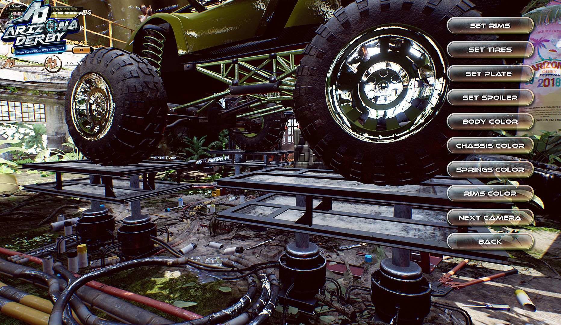 The driving impression is authentic and realistic, at the same time arcade and simulation-like, physics is very complex, featuring tons of high-end algorithms that controlling interactive aspects of vehicles and they are carefully improved over years of research and extended design of "Arizona Derby" to make it utterly fun, and some aspects of the physics may see as arcade and it's intended to be since the game is not a fully accurate off-road simulation, but having most of those aspects since it's an arcade racer. Gameplayhighly recreating the spirit of the real off-road racing experience with that glimpse of arcade racing, to make it more fan and enable players to do more exciting stunts. Ai opponents are ultimately smart, skilled for the off-roads drive, so you need to reach a unique set of skills needed for realistic off-road terrains. You need to take care of how fast and at which angle going over jumps and bumpy roads, sometimes shortcuts ain't the best path to lead the race and you can rollover. Every track, from the current 31 tracks is specific and needs training, a strategy that works on one level is different on another, the same is with an approach to win. Training is most important and over time you can increase the difficulty and achieve more XP/AD$ rewards. You can play dirty and hit out racers aside, and score more as of that, but you will risk they hit you harder and even more intrusive.