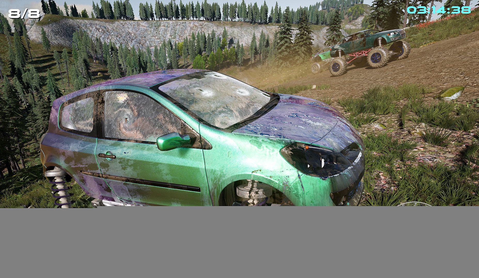 In order to stay competitive for the off-road drive, you need to pimp your car and set it to the max. You need to experiment with spring and damping stiffness, front and rear heights of your ride as well brake force to find out what’s fits your driving style. Here you can track it all in real-time. This is your garage, it’s little dirt but enjoy it. Rigs are worthy.