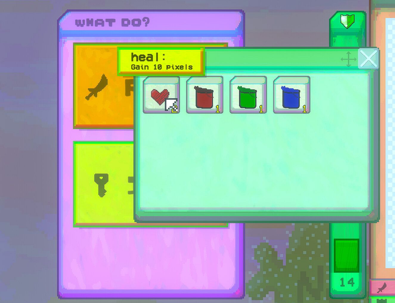 Draw your own silly characters in Pant. The colours of the pixels you pick will matter in battle!