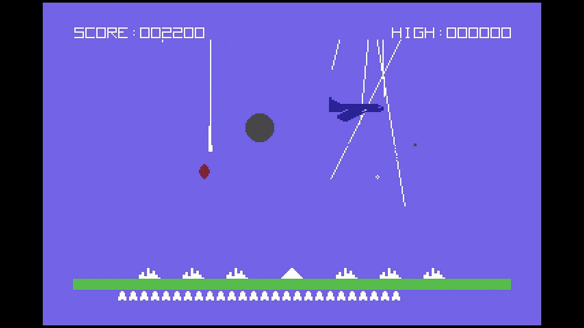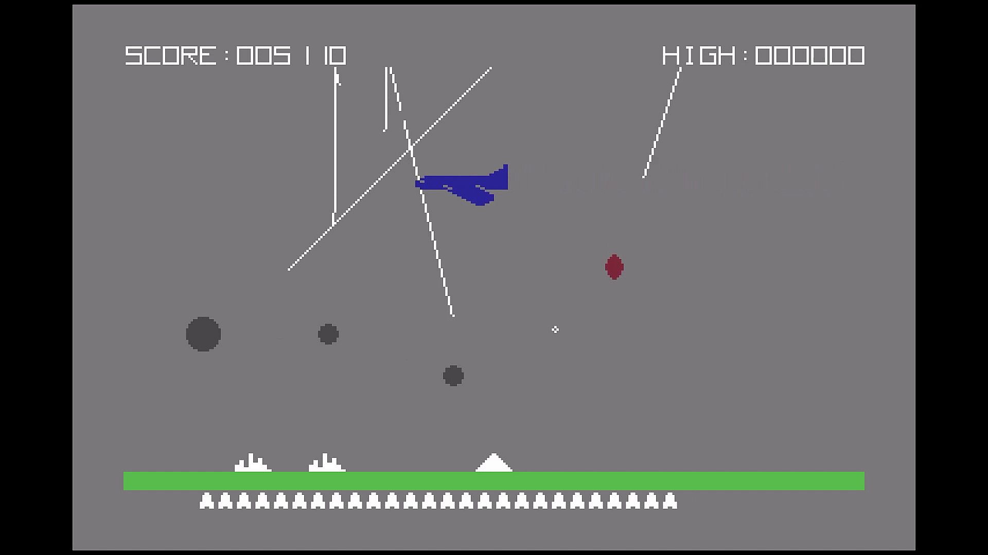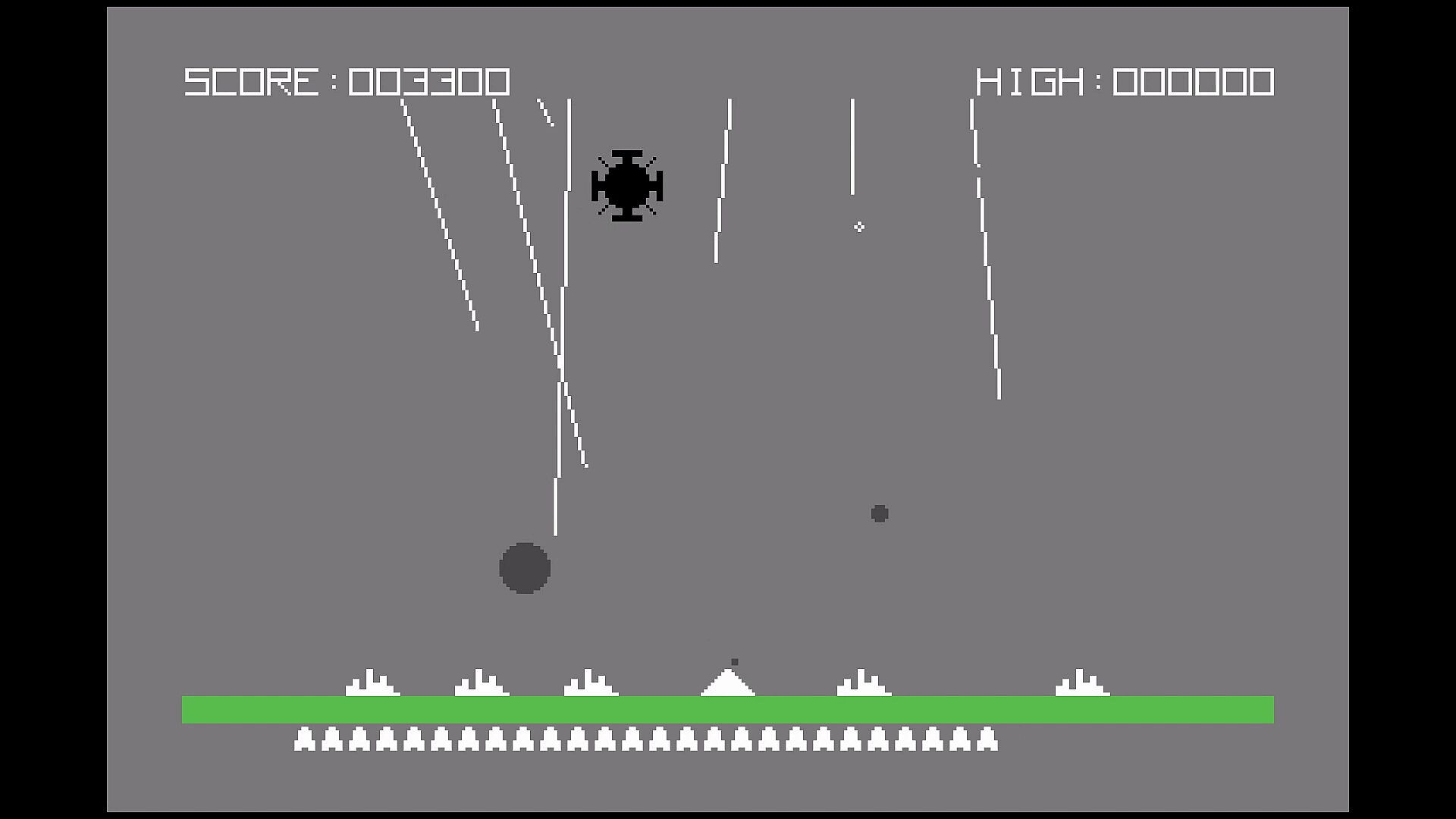 Protect your cities from waves of nuclear attack by using powerful, but limited, missile batteries. Score extra points by getting direct hits, shooting down spy satellites, and having missiles left over at the end of each wave.