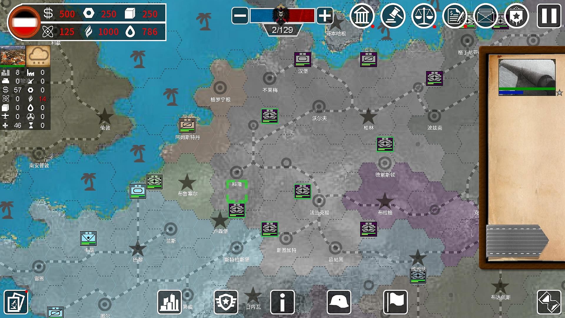 The game mainly includes three modes: commander mode, Battle mode, legion modeIn Commander in Chief mode, you play as a commander in chief who controls the military and diplomatic powers of your country, controlling its fate over 150 rounds