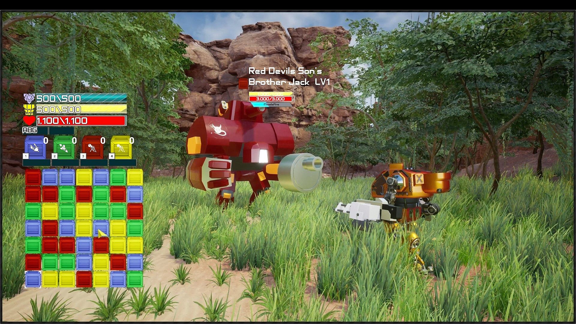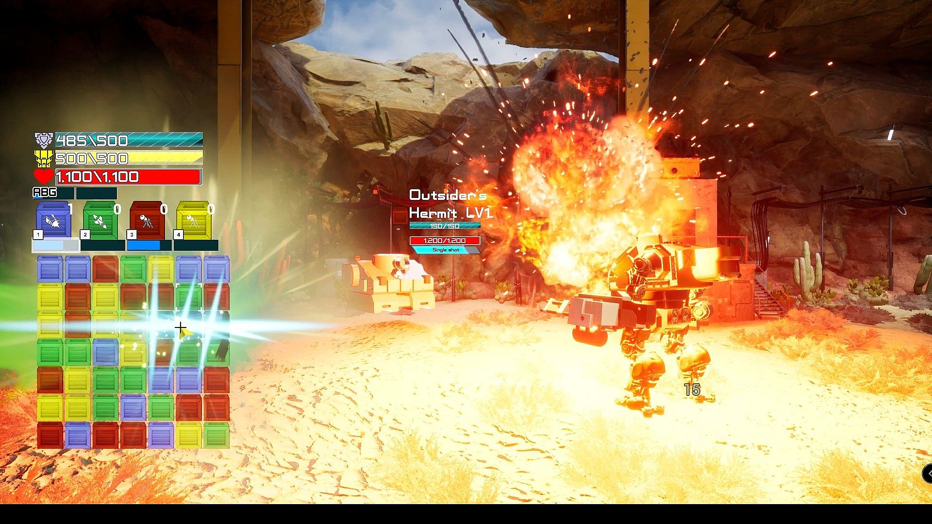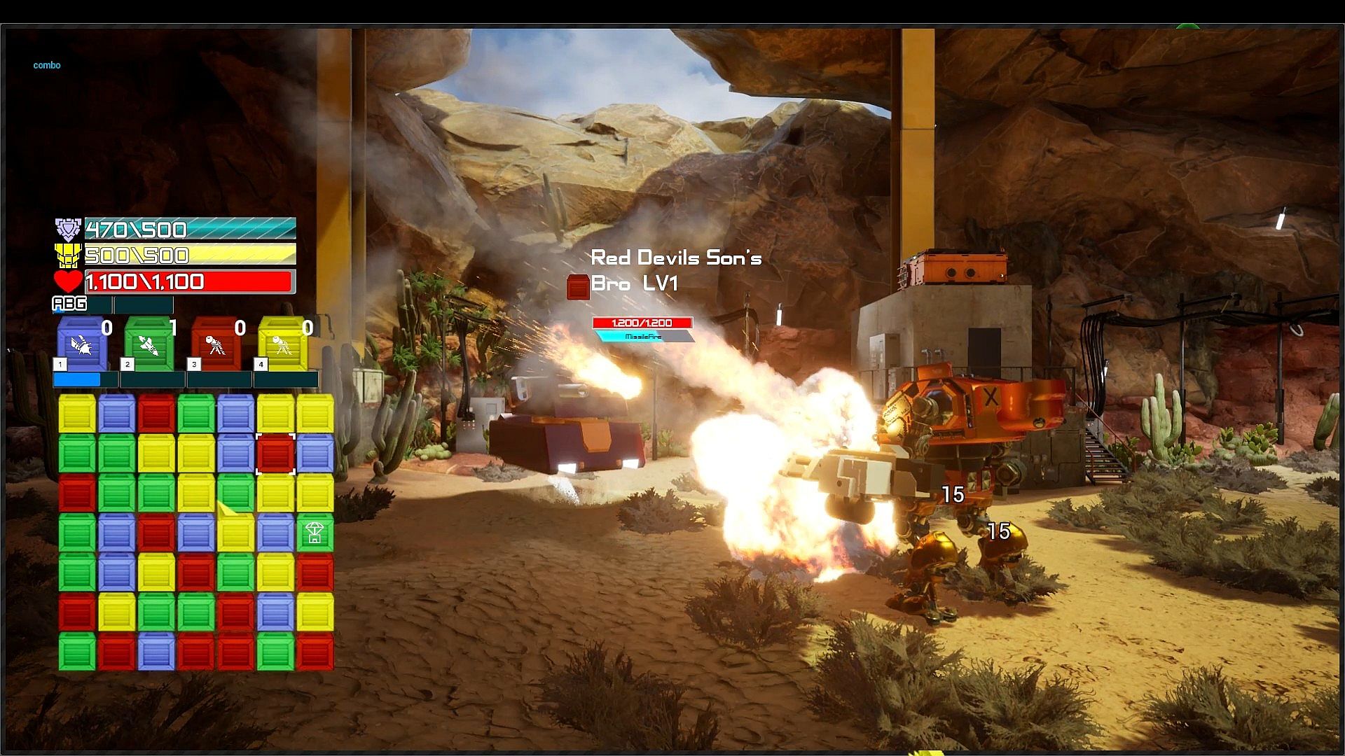 In combat Armored Xpress MECH uses energy from supply crates that are matched during play to power its weapons and systems. Weapons are available to fire  at specific power levels with a maximum of 4 levels. You can strategically fire each weapon at will or wait until they are at their maximum level. This strategy allows you to reserve a weapon or unleash all the weapons at once for a truly devastating attack. Each supply crate matched with its corresponding color in groups of 3 fills the matching weapons power gauge. Supply crates matched with more then 3 of the same color generates a special care package crate. When broken these crates drastically boosts the corresponding weapons power gauge. Items and other abilities are powered by MECH's ability gauge/ABG system which fills over time. Sequential matches in a turn generates a combo which fills the ABG faster allowing you to use abilities sooner.