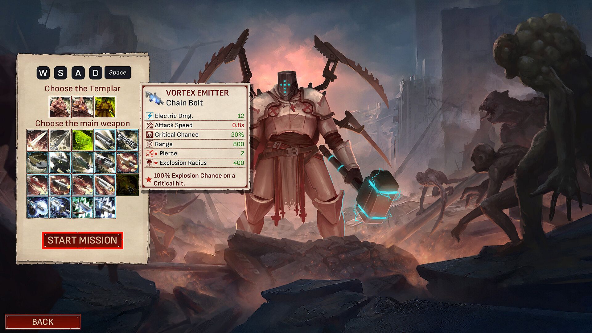 Choose from among 10 different heroes, each with distinct abilities reshaping gameplay. Level up, evolve your character through meta-progression, and forge your path to the deepest abyss of hell, where you shall confront the ultimate infernal force. Fight through 60 handcrafted levels set across unique locations, each telling fragments of the story through the world itself - ruins, relics, and the scars of the apocalypse revealing the truth behind the fall of mankind.