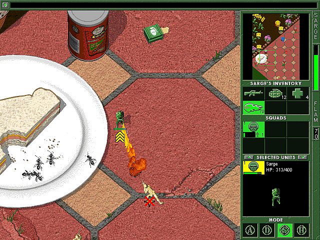 A horde of alien toys invades Earth and teams up with the Tan Army to conquer the galaxy. Green plastic soldier Sarge joins forces with Tina Tomorrow and her Space Troopers battalion to fight back. They freeze, zap, vaporize, and blast enemies across varied worlds. Players wield silenced rifles, incendiary grenades, napalm, heavy paratroopers, freeze rays, laser guns, fly-swatters, and glue in this action strategy game on PC. Battle two new toy races: the Galactic Army's Stunners, Paralyzers, Gunners, and Incinerators, plus the Alien Army's Larvae, Spiders, Drones, and Commanders. Explore a space planet city, bathroom, sandbox, and backyard picnic. Strategy fans who enjoy toy soldier combat thrive here.