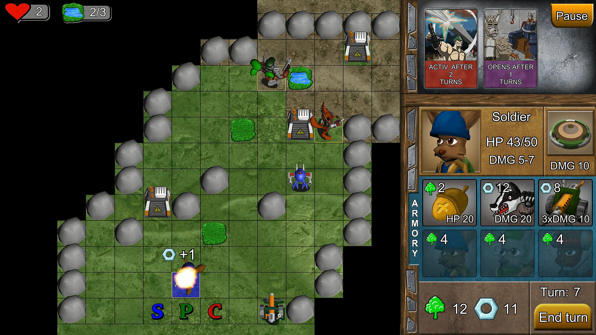 • 3 squirrel units with different skills