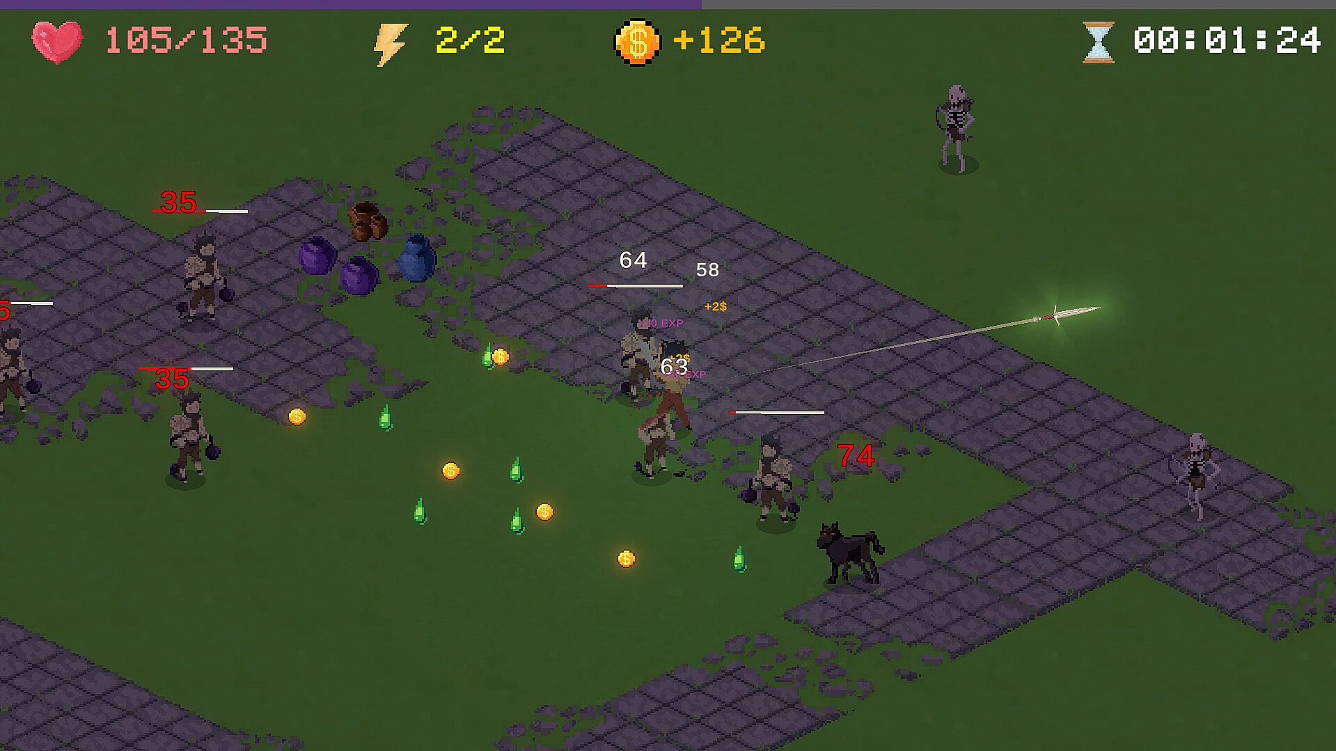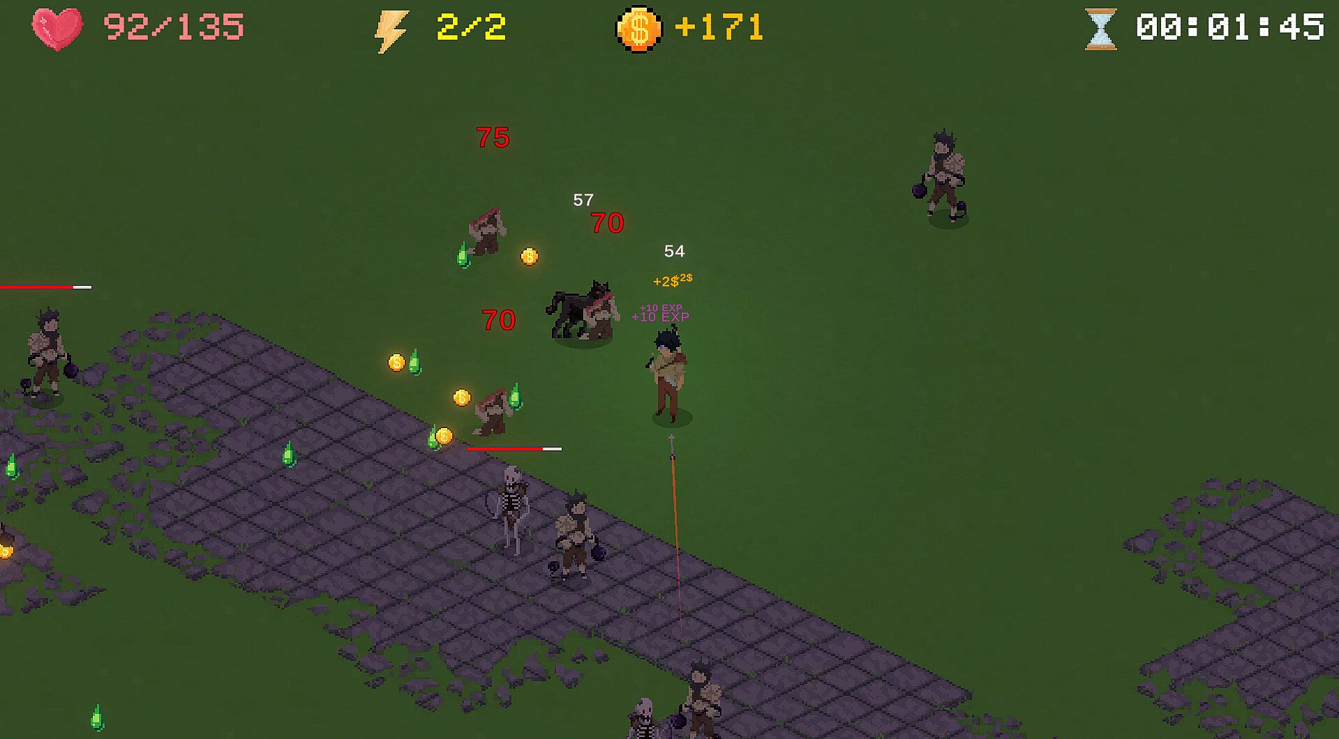 Dive into the battlefield, level up, find great items, defeat formidable bosses, and stand your ground for as long as possible with your abilities..