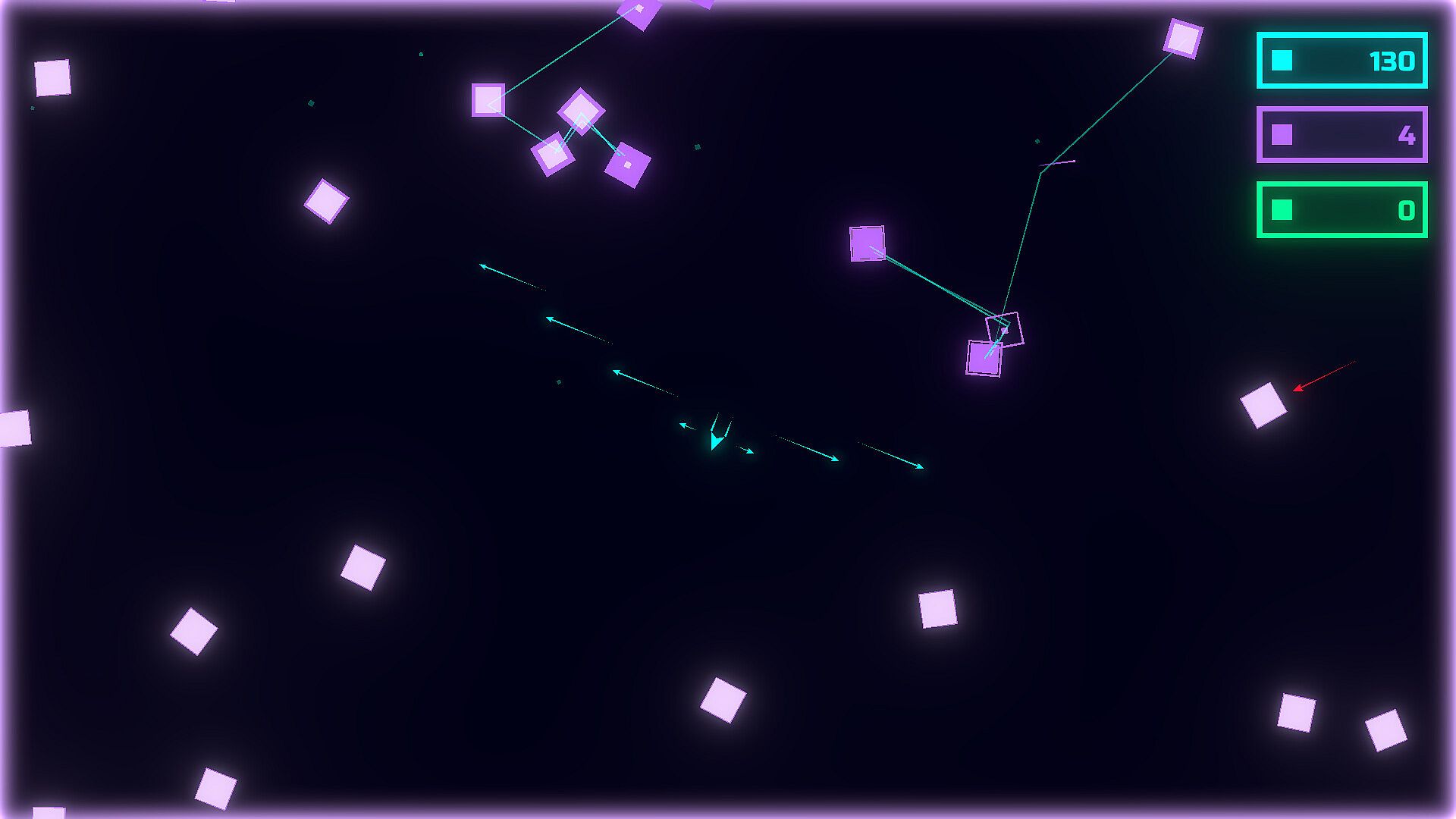 Collect squares that spawn around the map by destroying them using your upgrades.