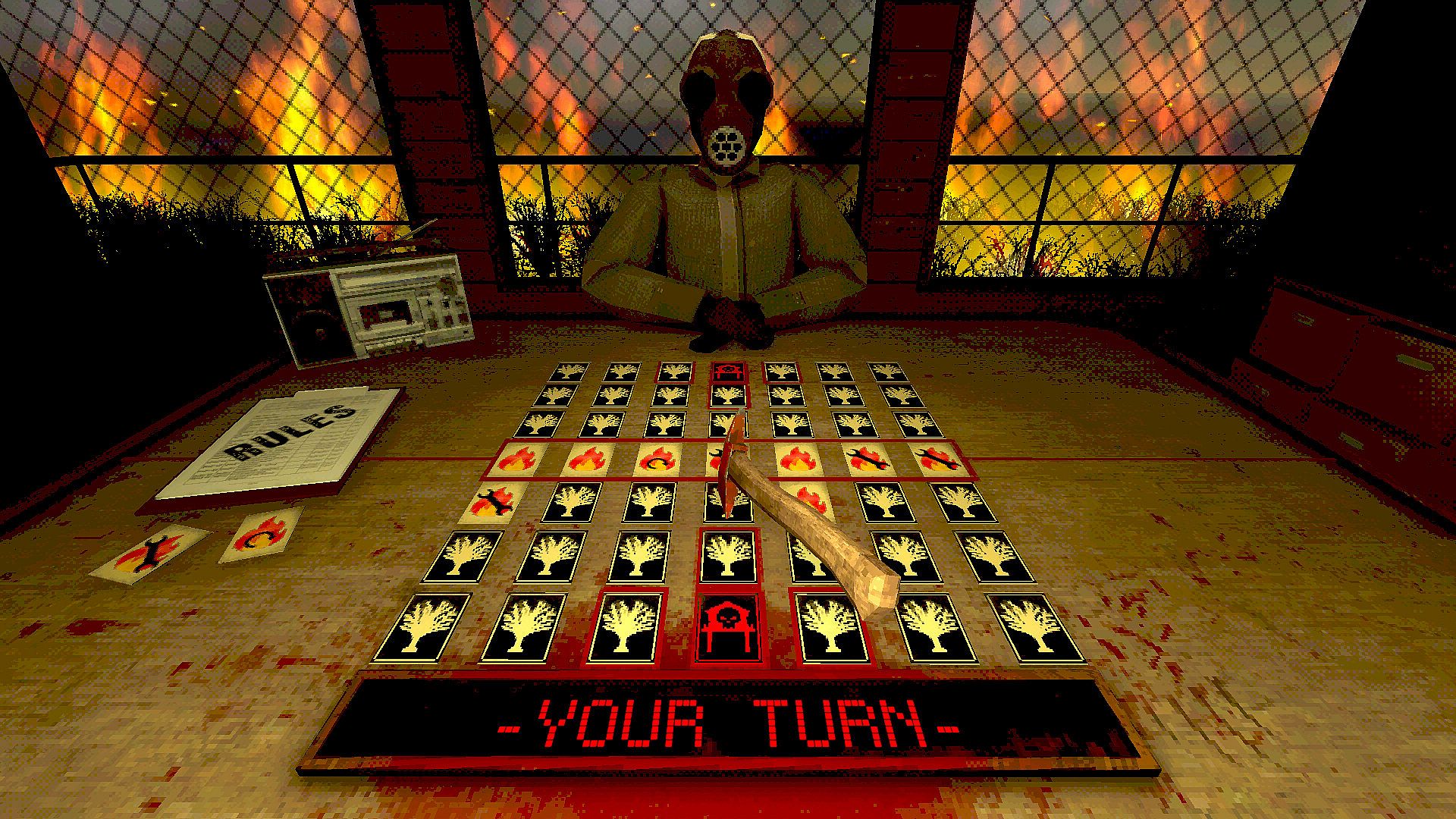 A [HOST] challenges you to a deadly game of chance where a forest fire spreads with each flip of a card.