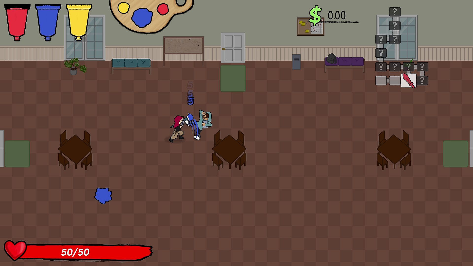 Play as Hue, a student who loves their craft, and fights enemies using different paints, each with a different ability!