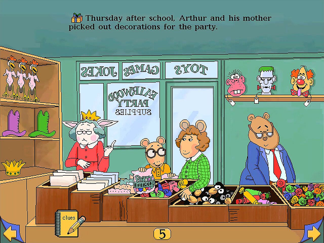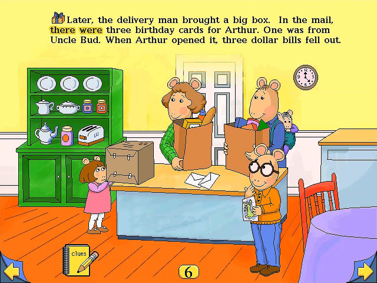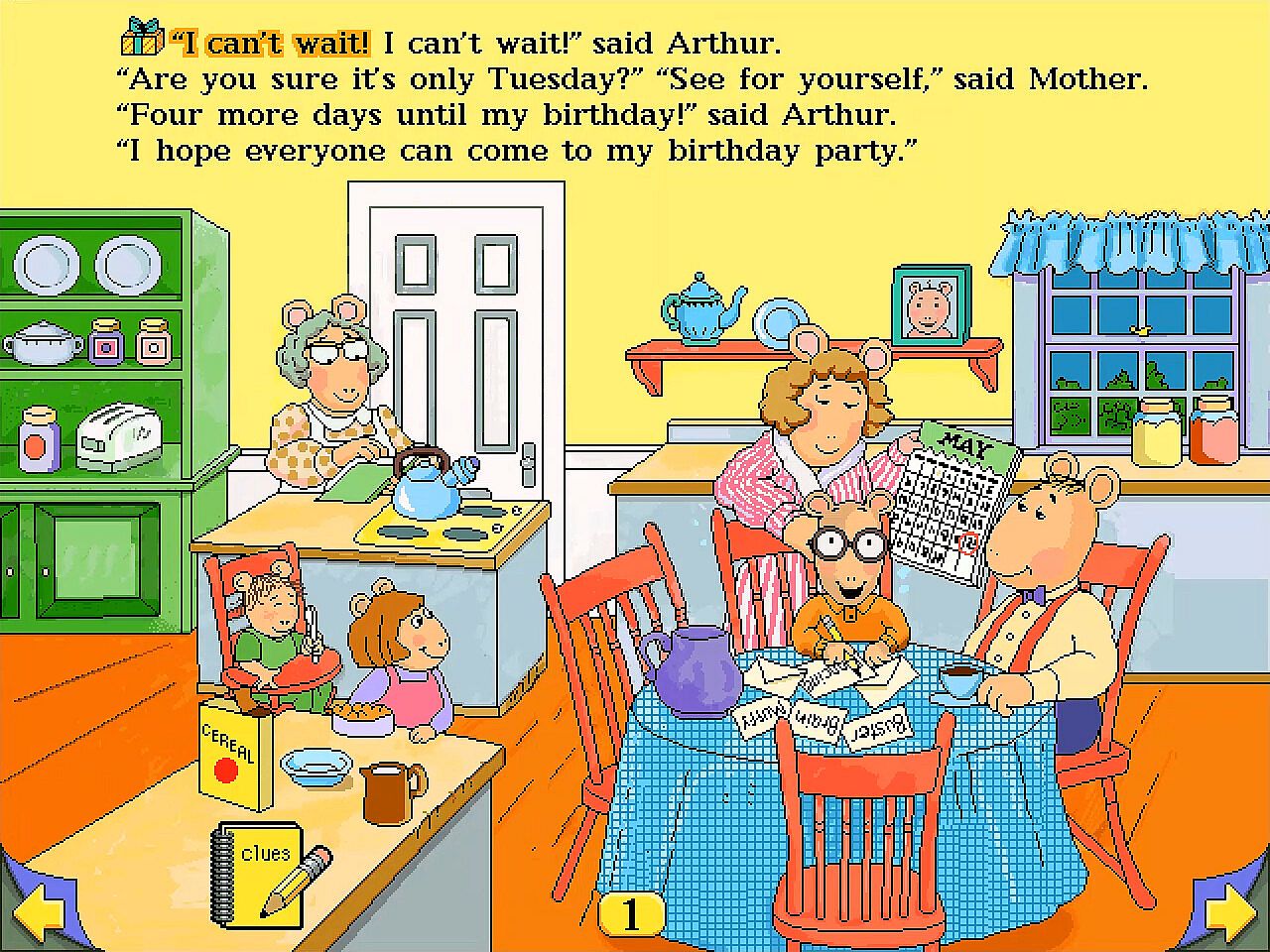 Since it's first release in 1994, Living Books' rendition of "Arthur’s Birthday" has been enjoyed by countless children. Step-by-step, the reader will find the story is full of surprising encounters with many of their favorite Arthur storybook characters, providing new ways to interact with the book again and again.